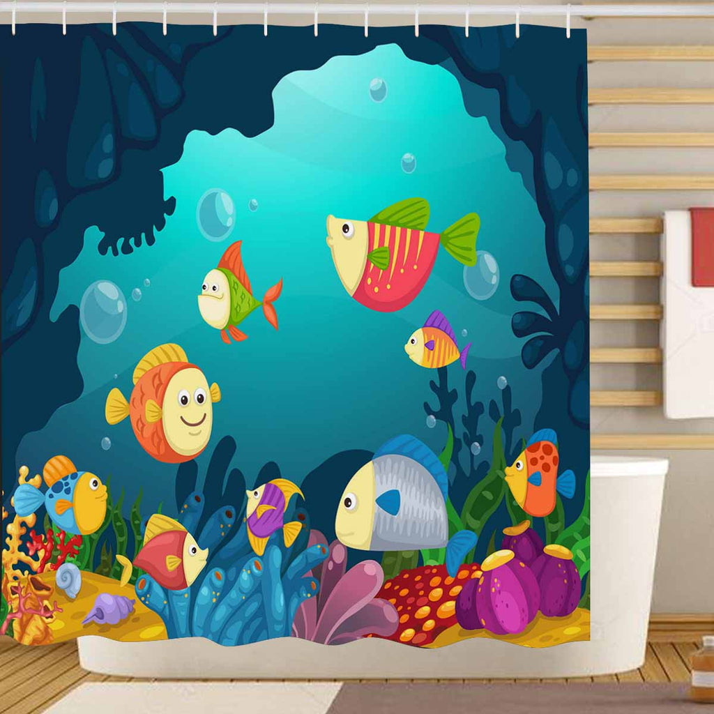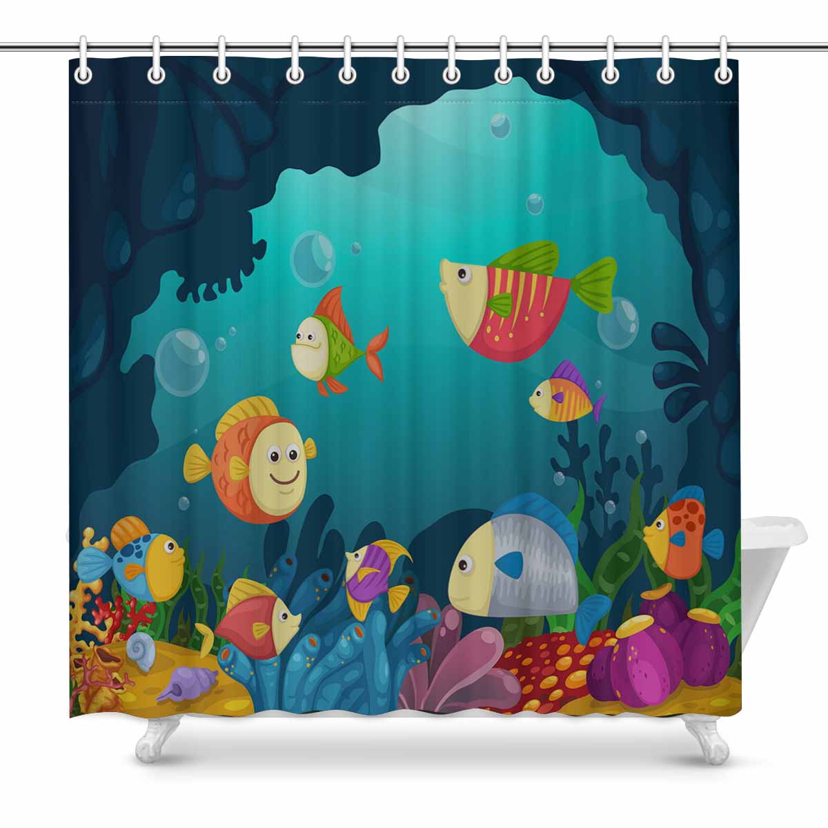Seaworld themed print on shower curtains for bathroom, create a brilliant atmosphere in your bathroom, include a selection of different stylish and custom-made designs for your bath decoration.