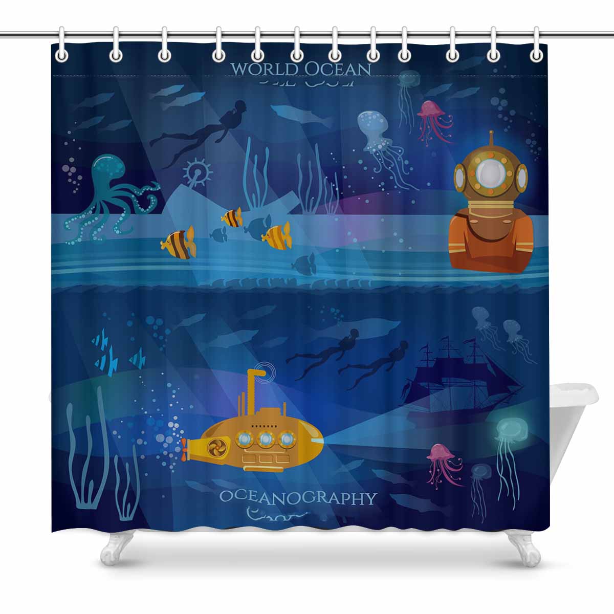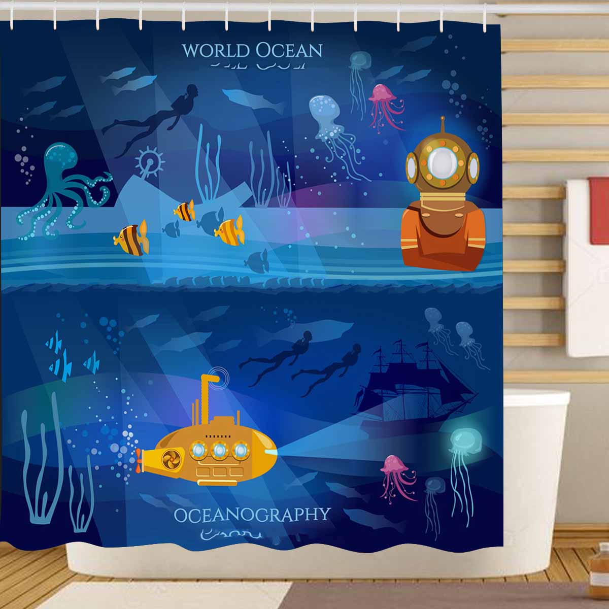Seaworld themed print on shower curtains for bathroom, create a brilliant atmosphere in your bathroom, include a selection of different stylish and custom-made designs for your bath decoration.