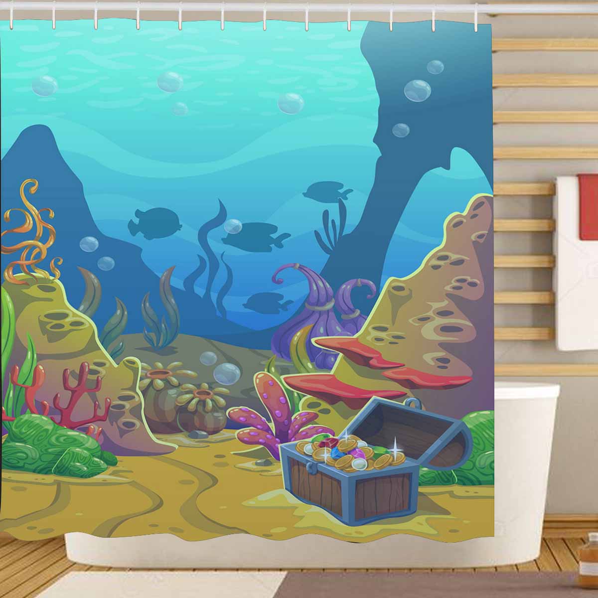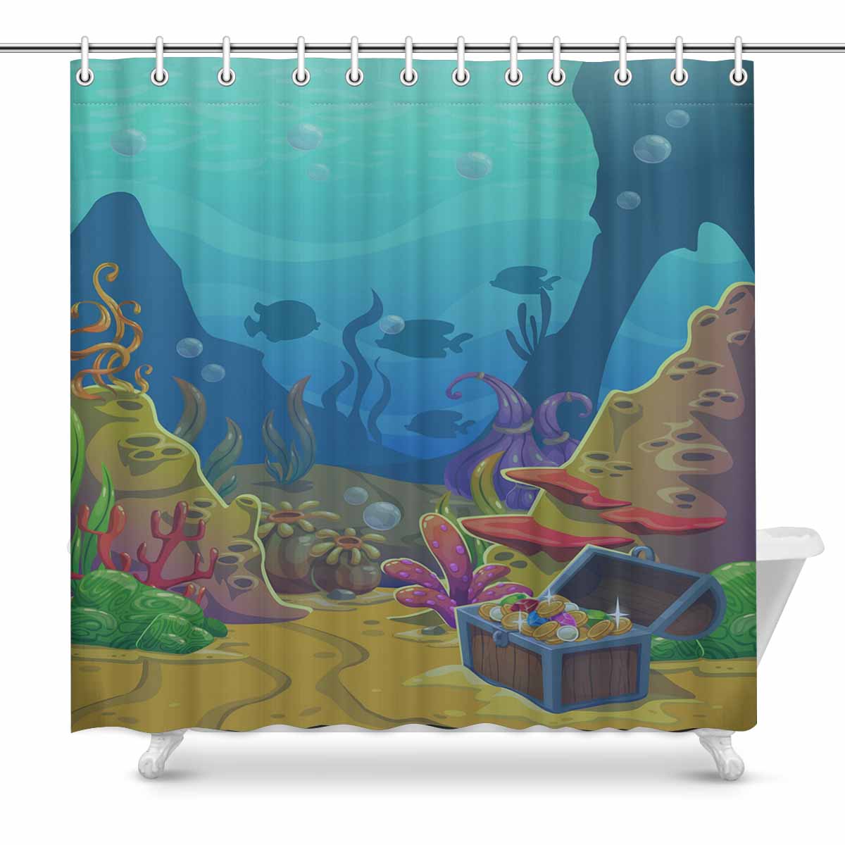 Seaworld themed print on shower curtains for bathroom, create a brilliant atmosphere in your bathroom, include a selection of different stylish and custom-made designs for your bath decoration.