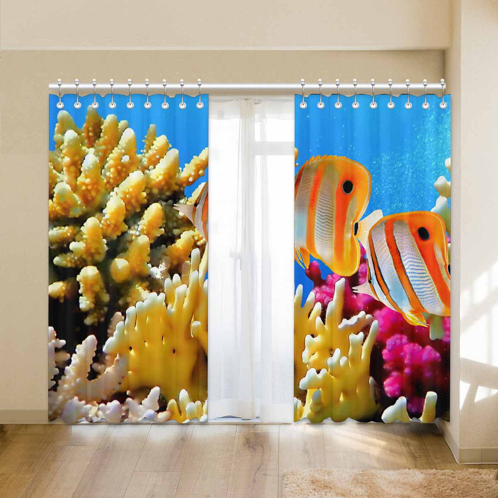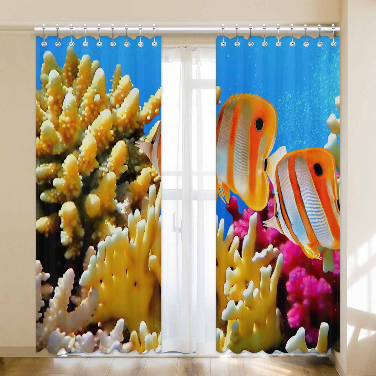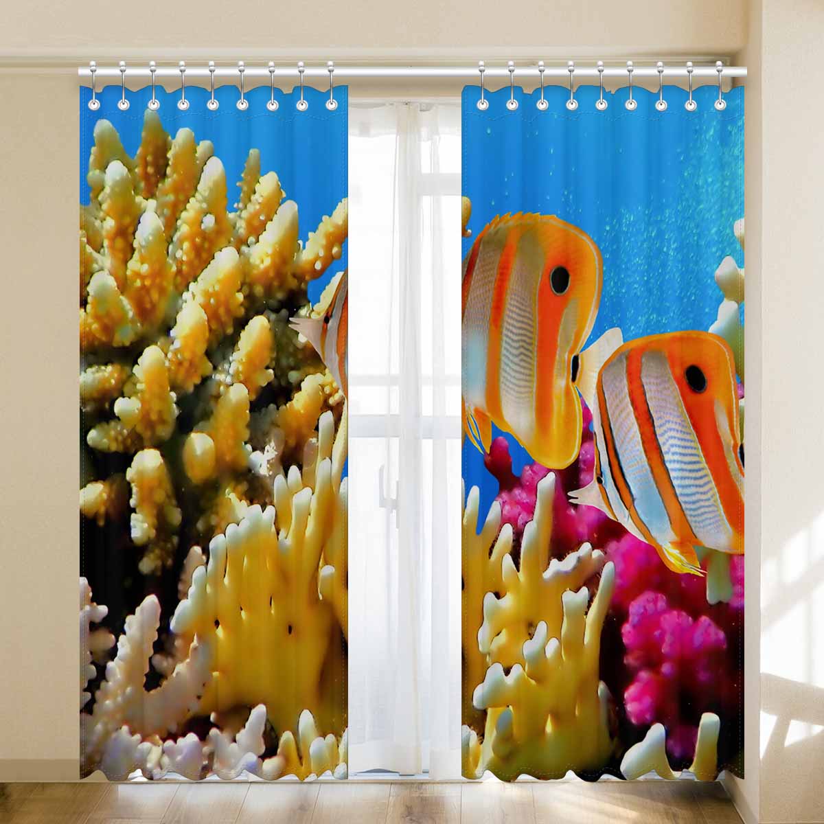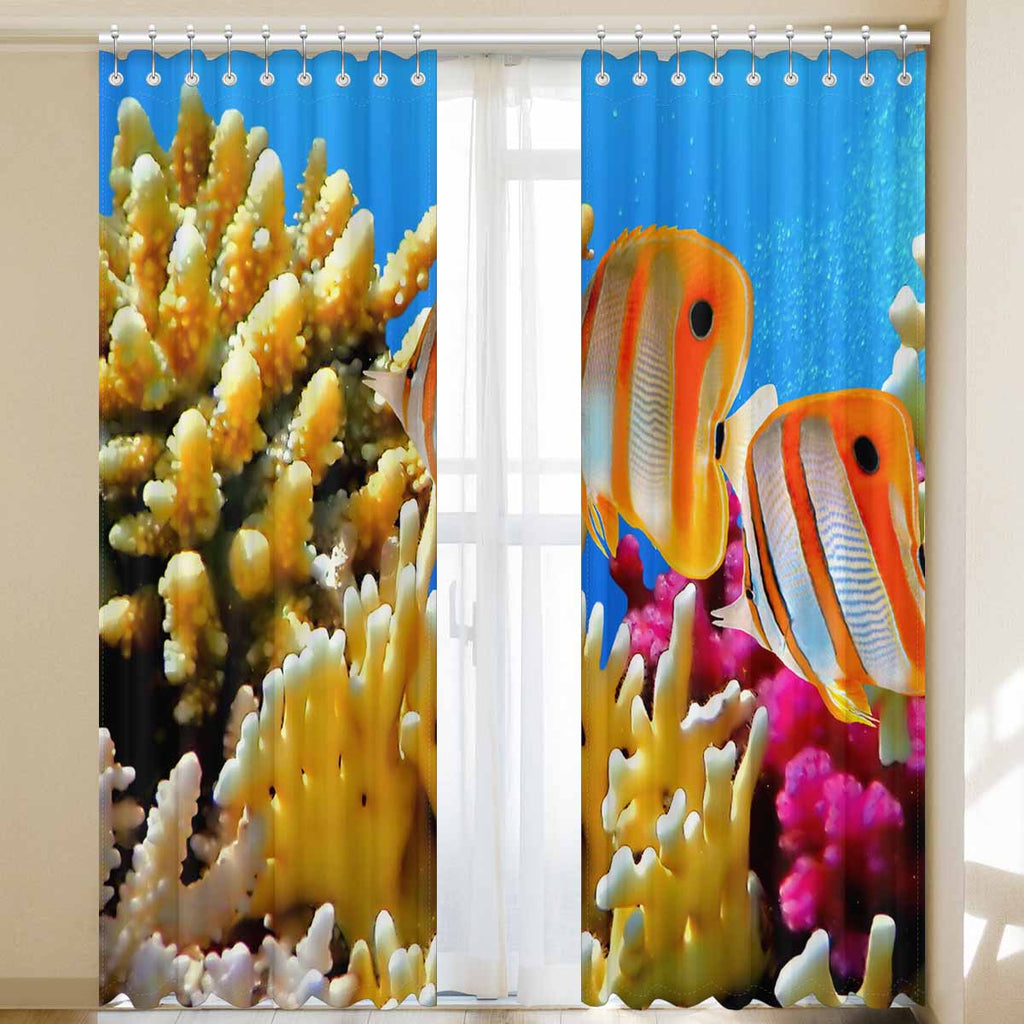 Seaworld Window Curtains print Coral reef and Copperband butterflyfish themed