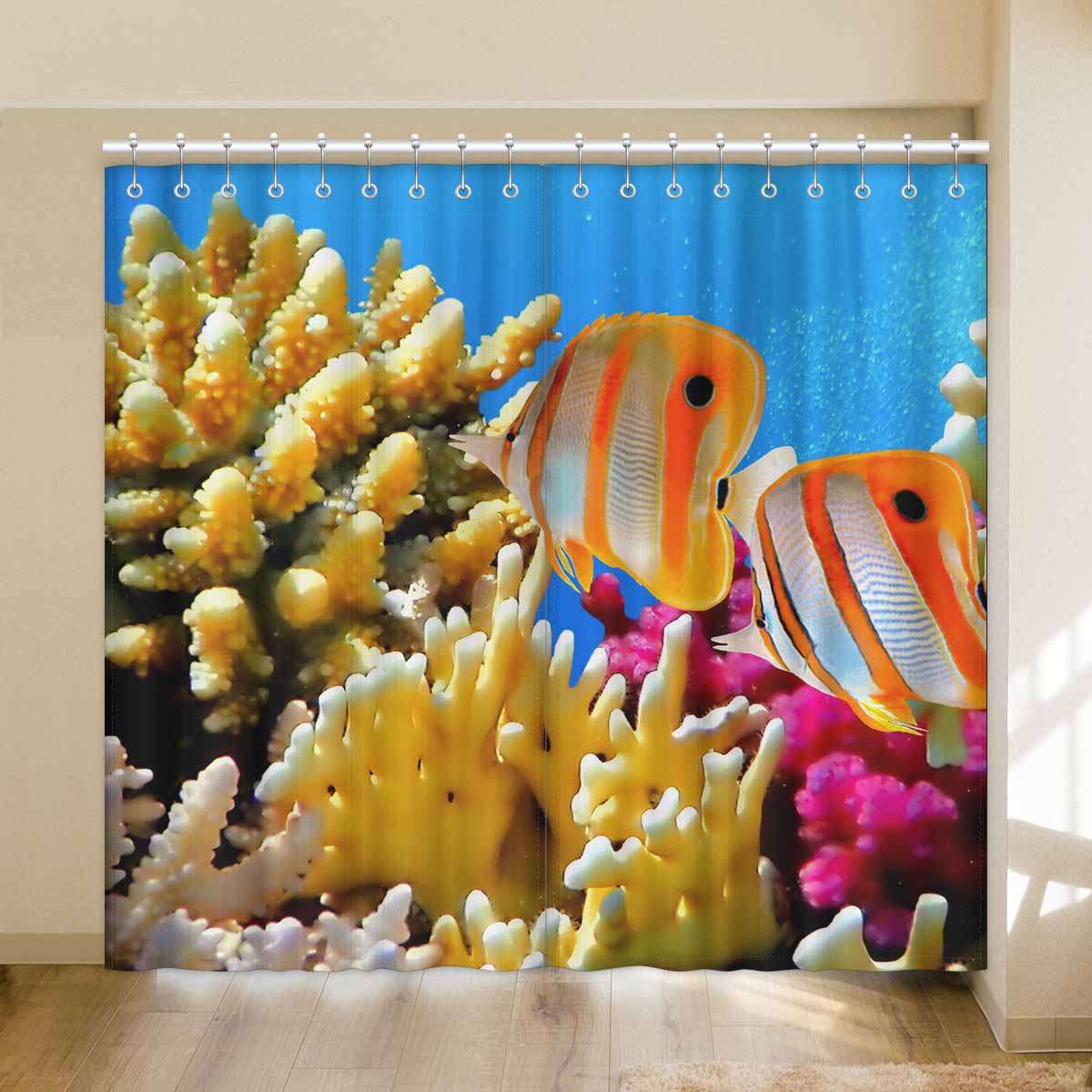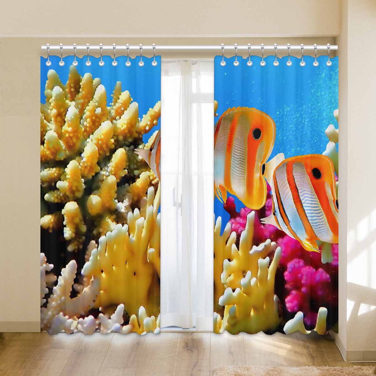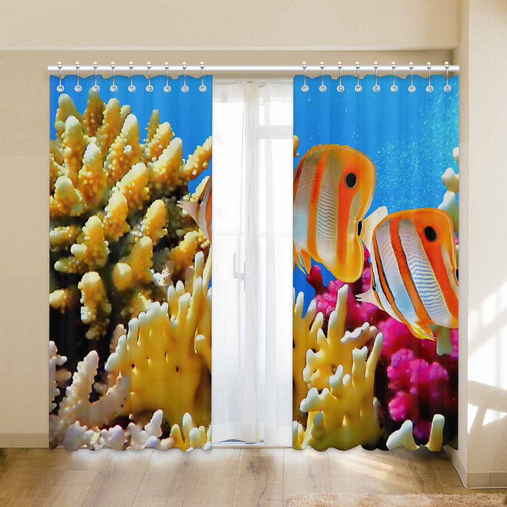 Seaworld Window Curtains print Coral reef and Copperband butterflyfish themed