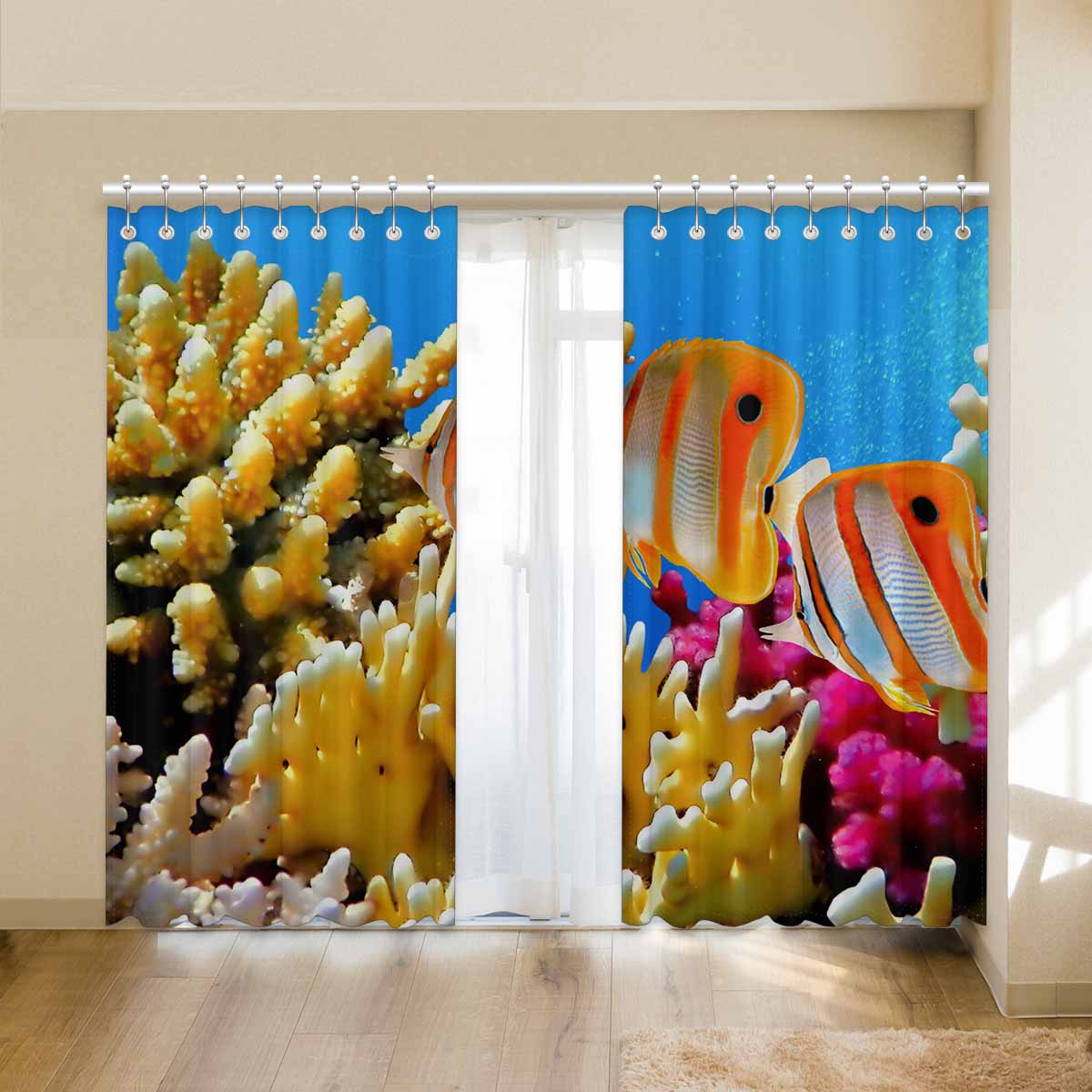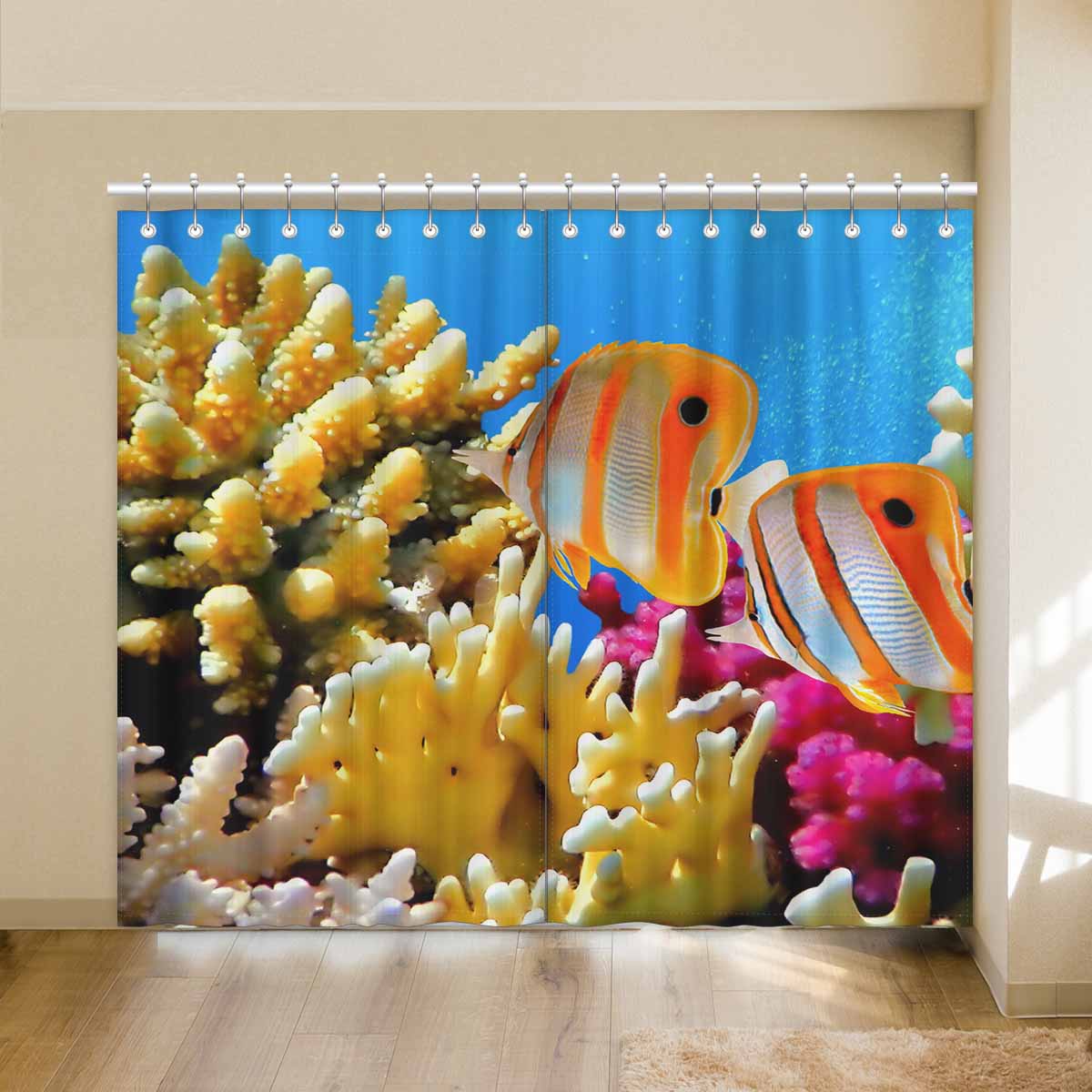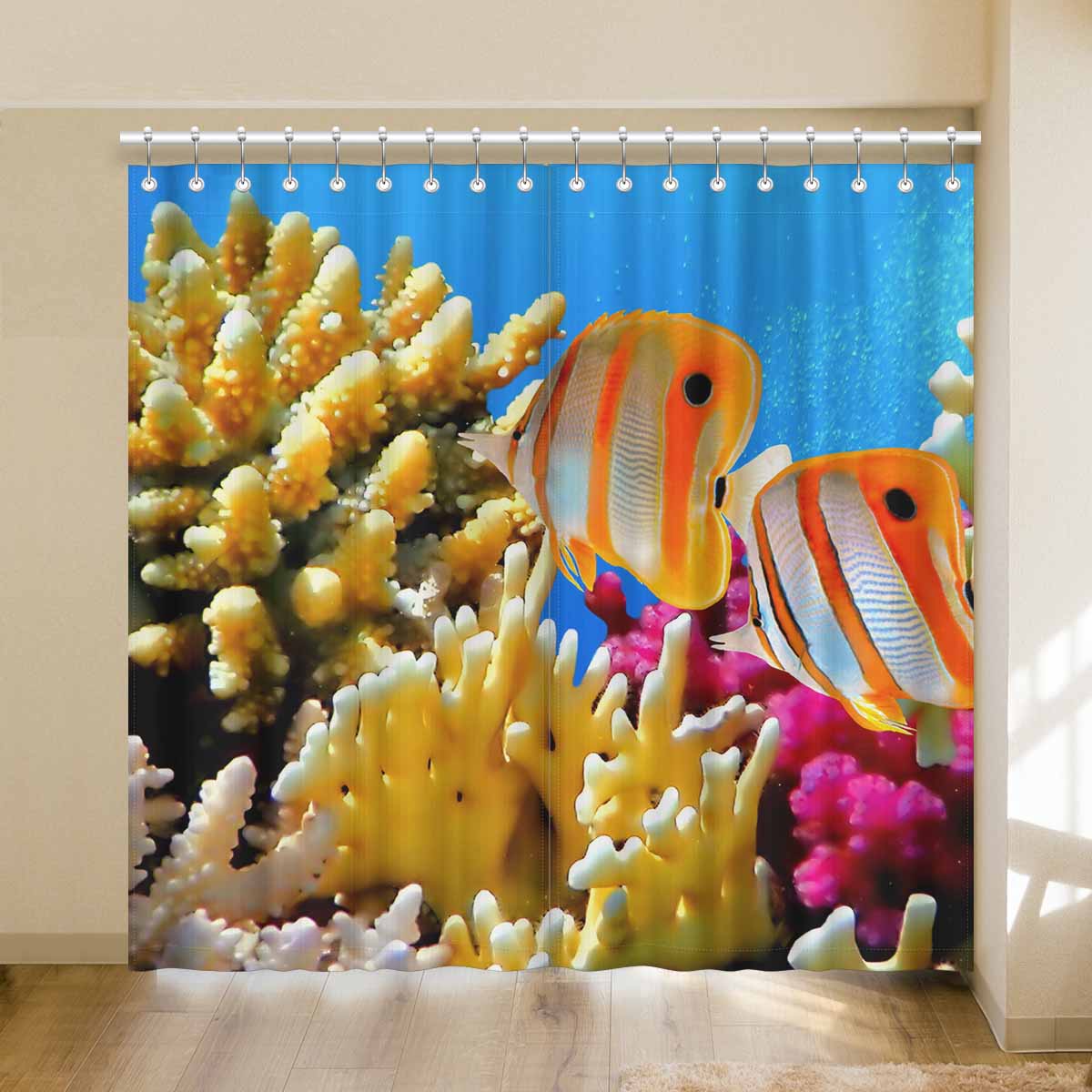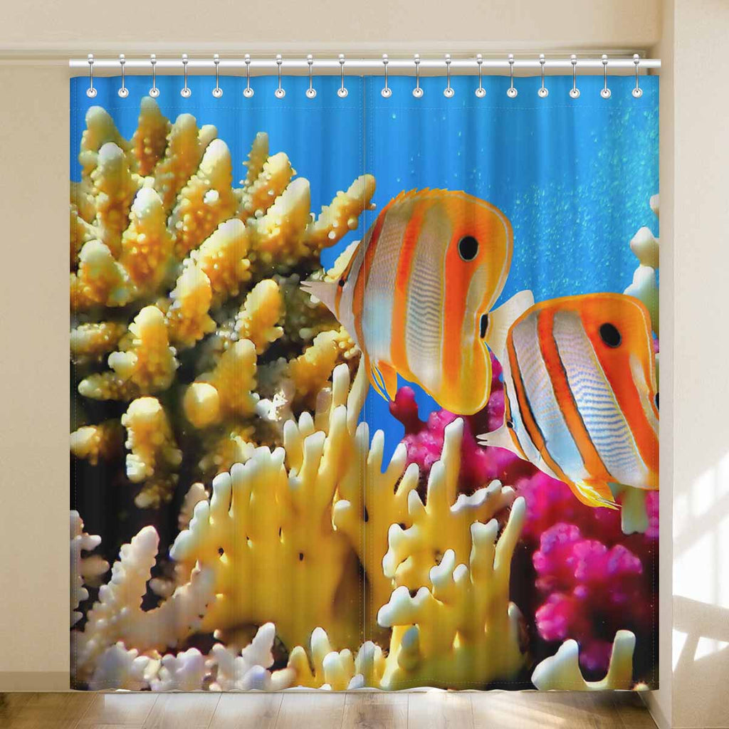 Seaworld Window Curtains print Coral reef and Copperband butterflyfish themed