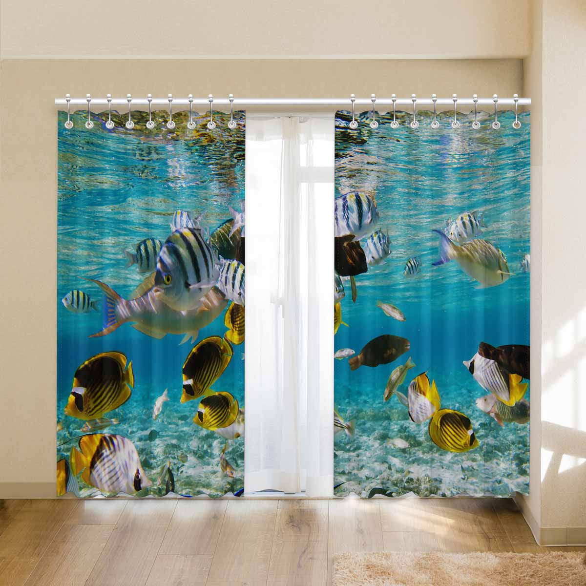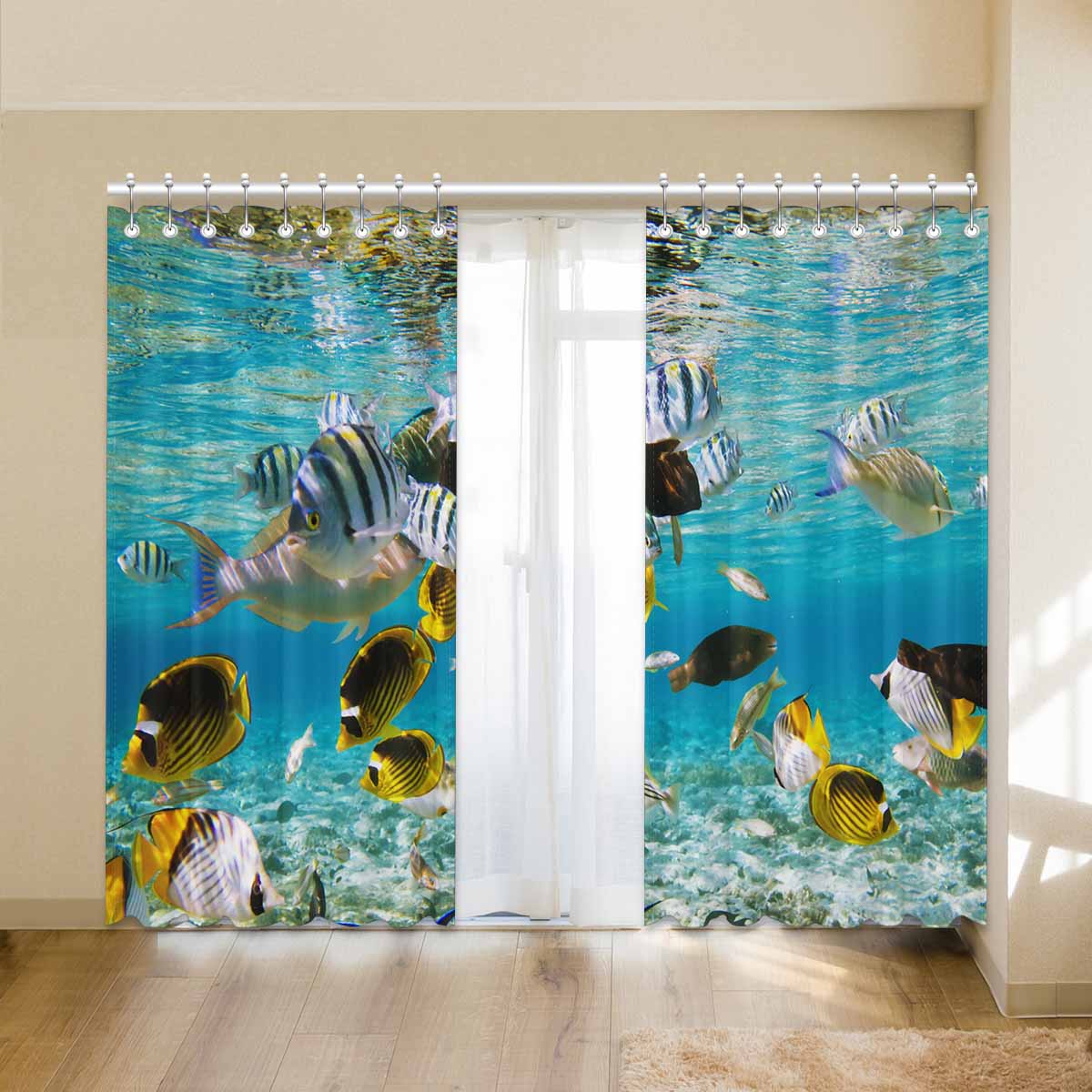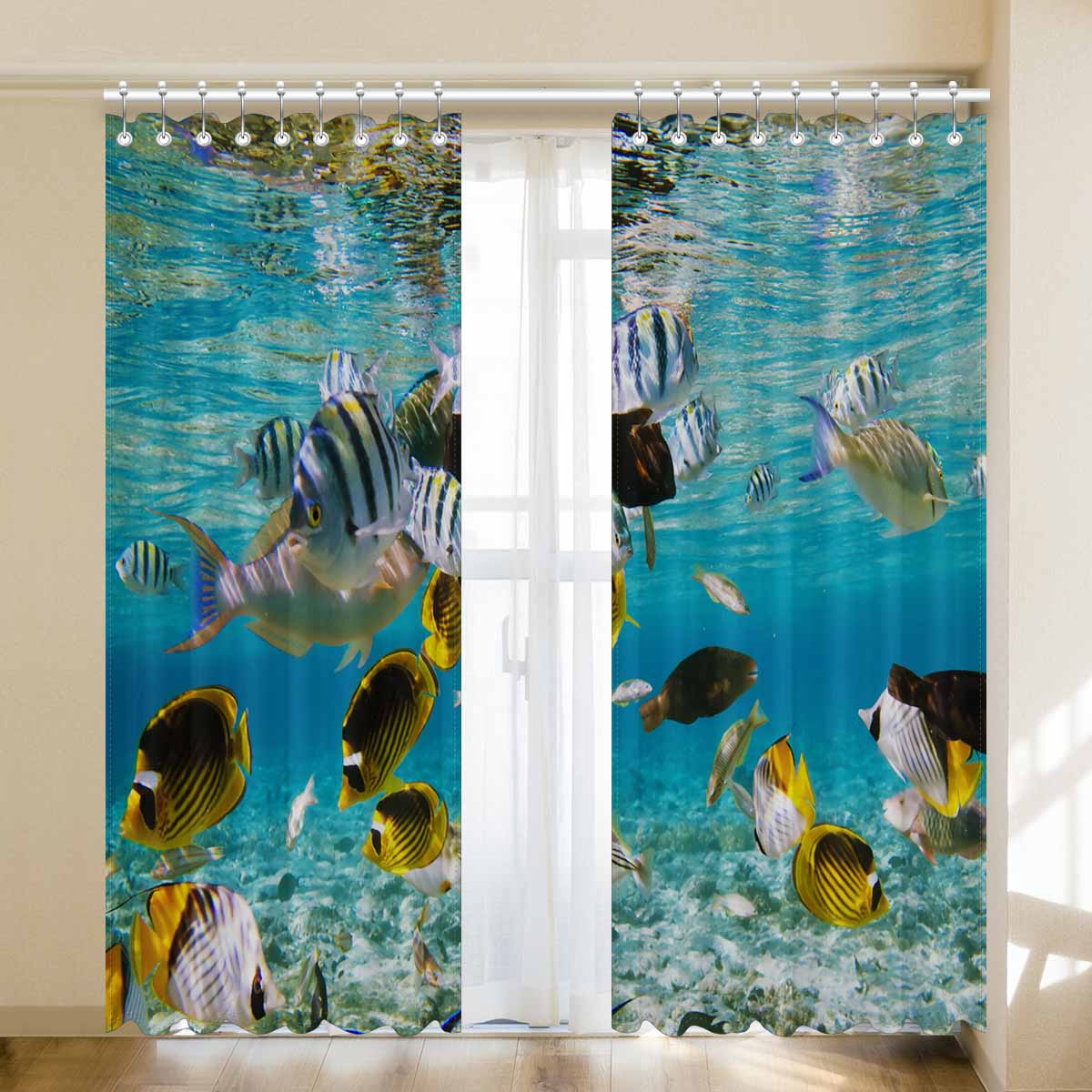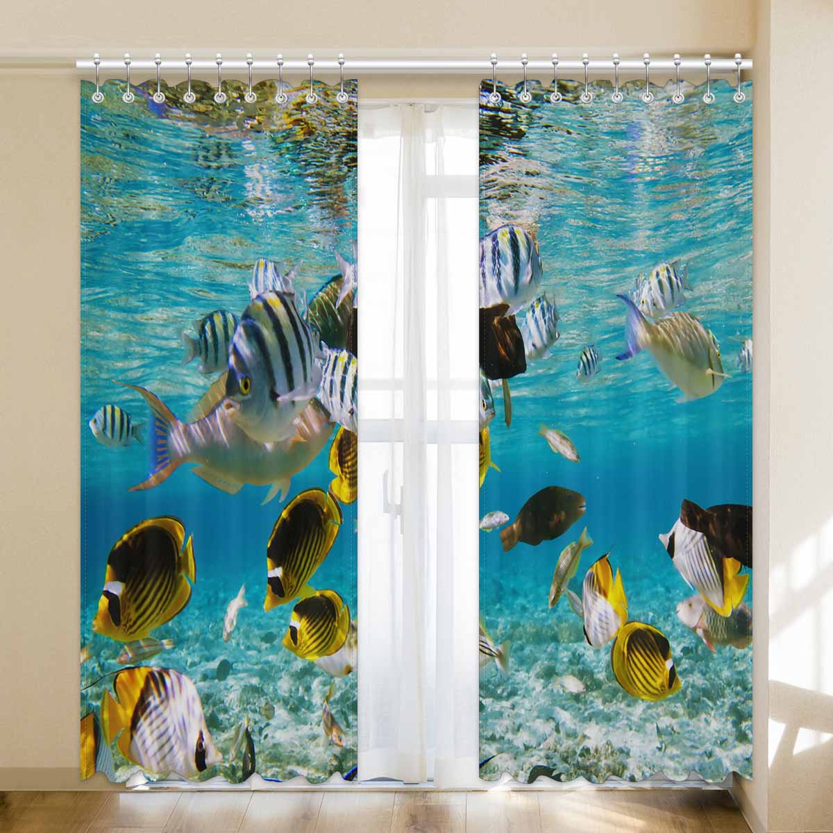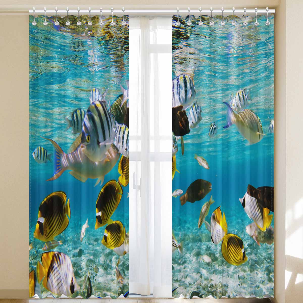 Seaworld Window Curtains print fish on Coral reef