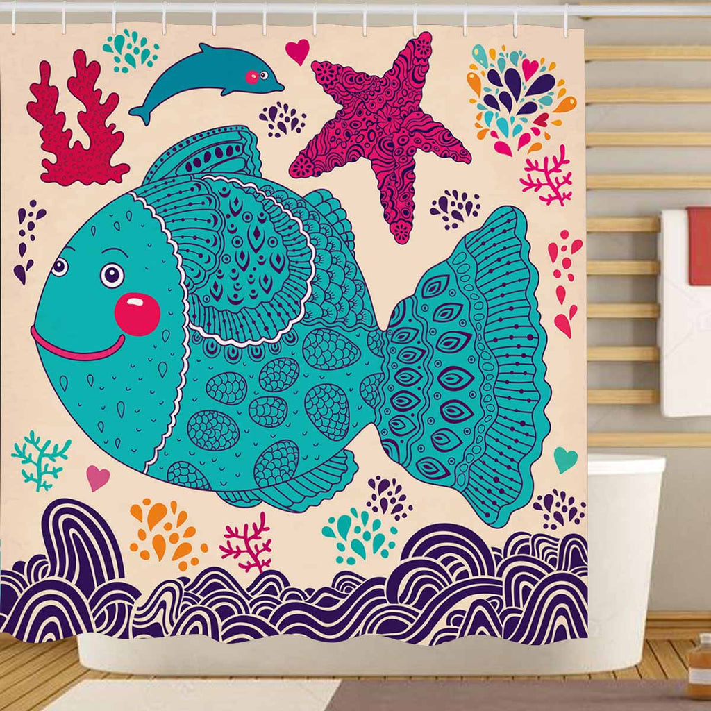 Seaworld Shower Curtains print with Cartoon color fishes