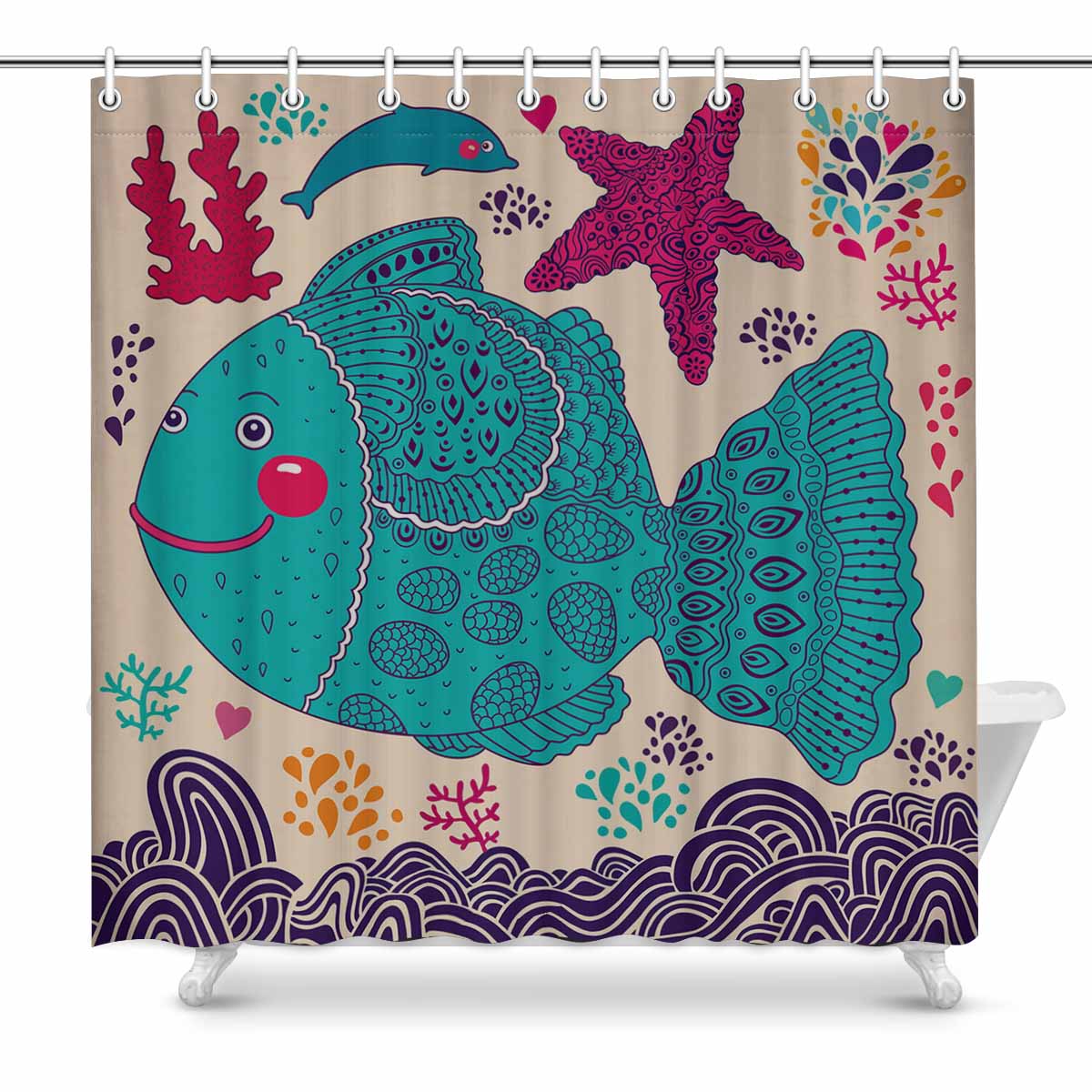 Seaworld themed print on shower curtains for bathroom, create a brilliant atmosphere in your bathroom, include a selection of different stylish and custom-made designs for your bath decoration.