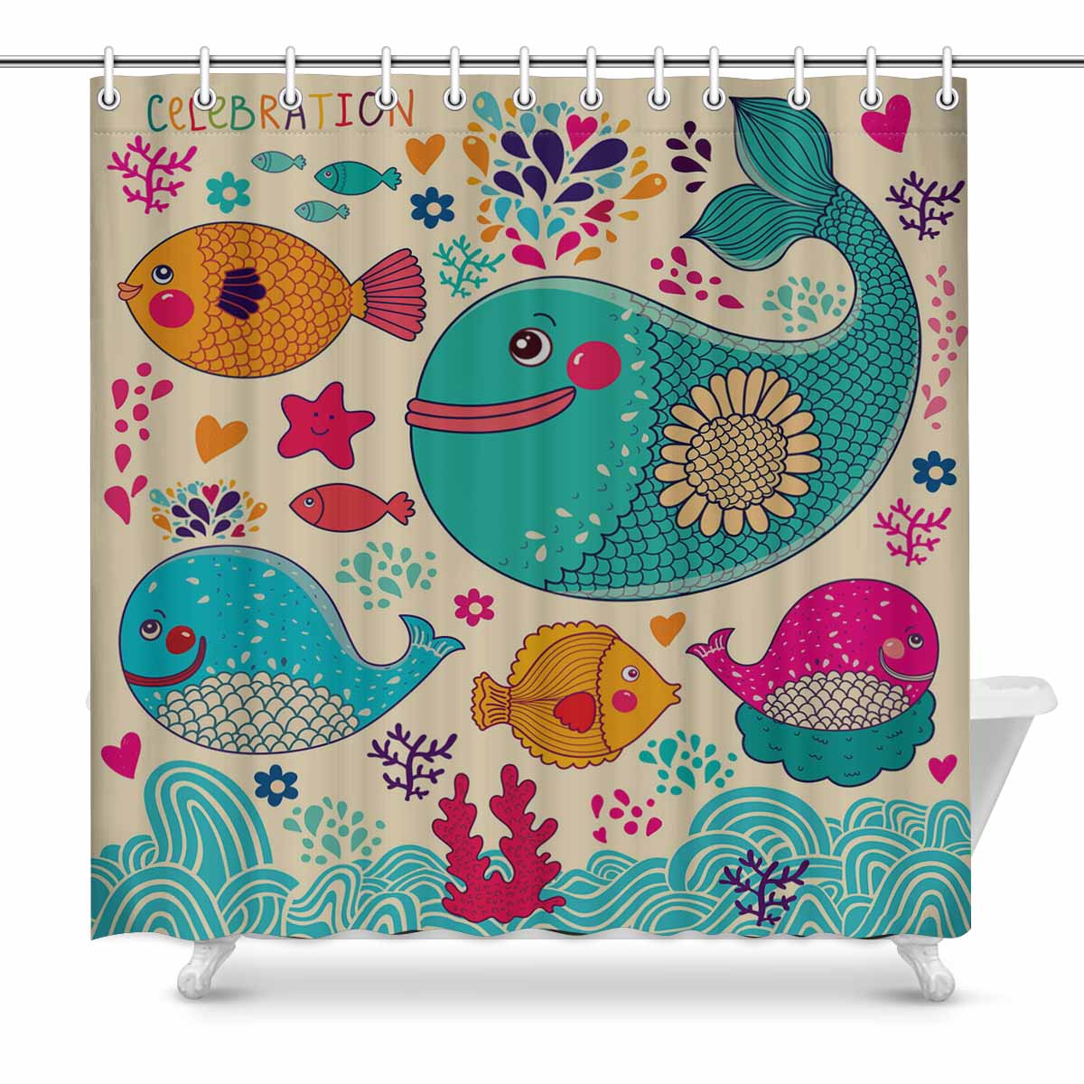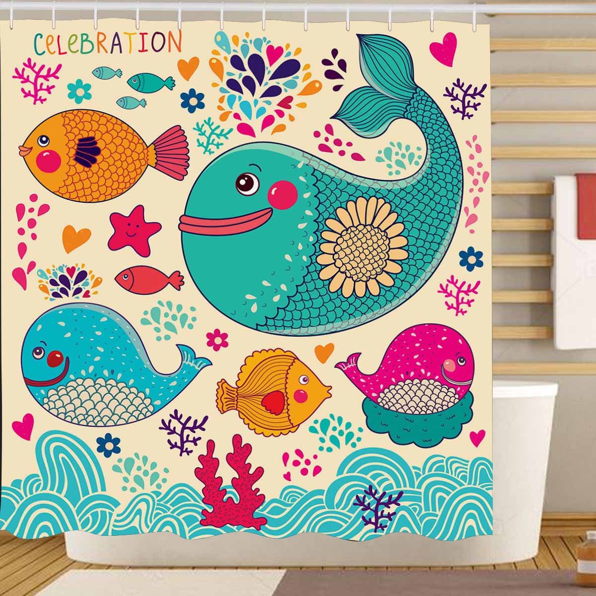 Seaworld themed print on shower curtains for bathroom, create a brilliant atmosphere in your bathroom, include a selection of different stylish and custom-made designs for your bath decoration.
