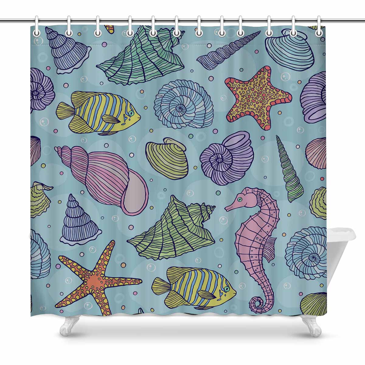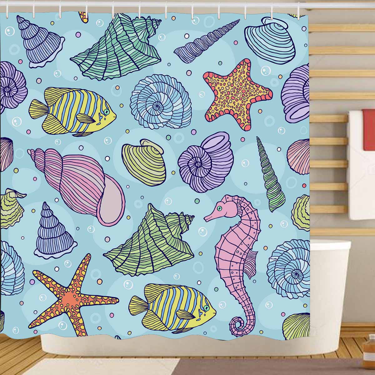 Seaworld themed print on shower curtains for bathroom, create a brilliant atmosphere in your bathroom, include a selection of different stylish and custom-made designs for your bath decoration.