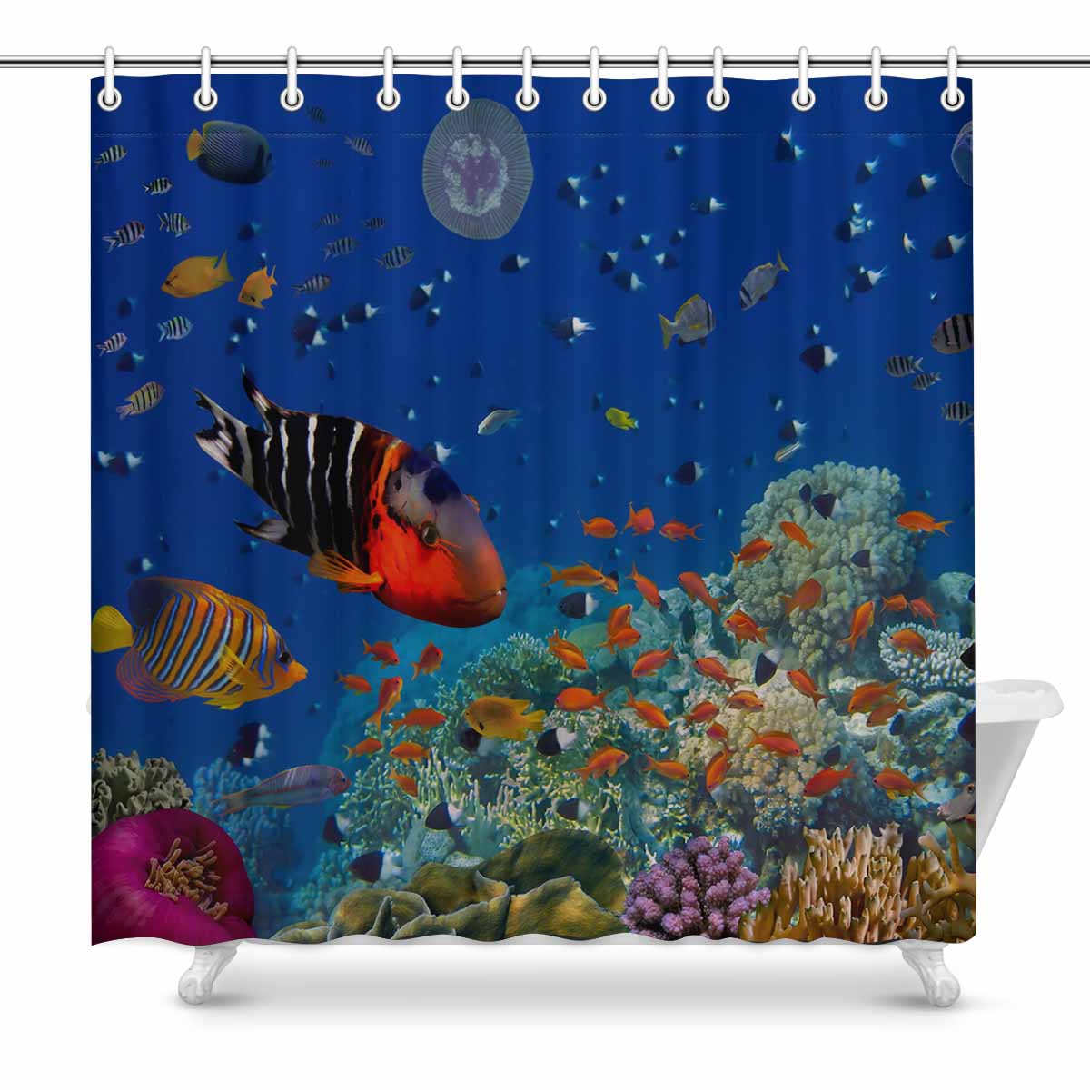 Seaworld themed print on shower curtains for bathroom, create a brilliant atmosphere in your bathroom, include a selection of different stylish and custom-made designs for your bath decoration.