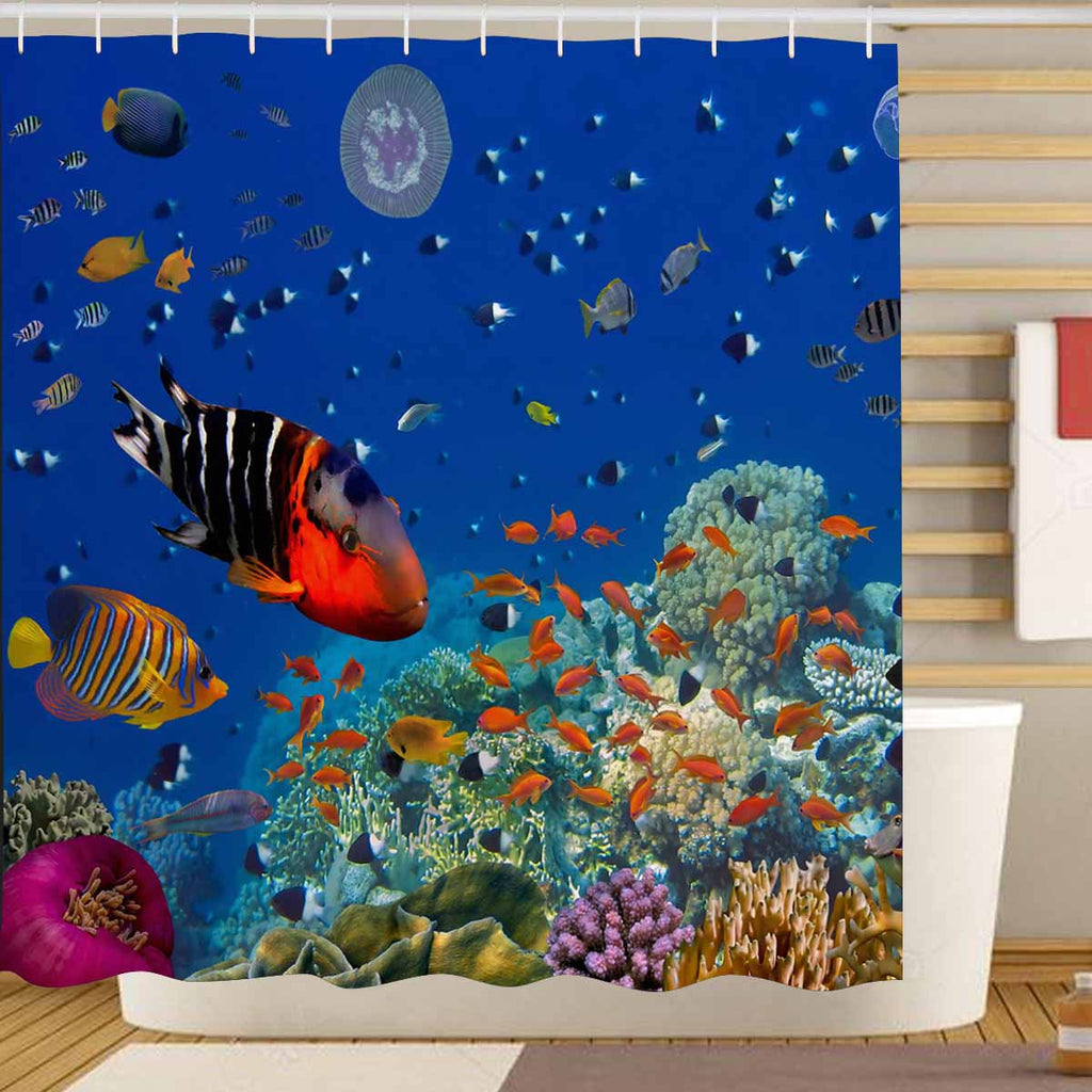 Seaworld Shower Curtains print with Colorful reef and fish