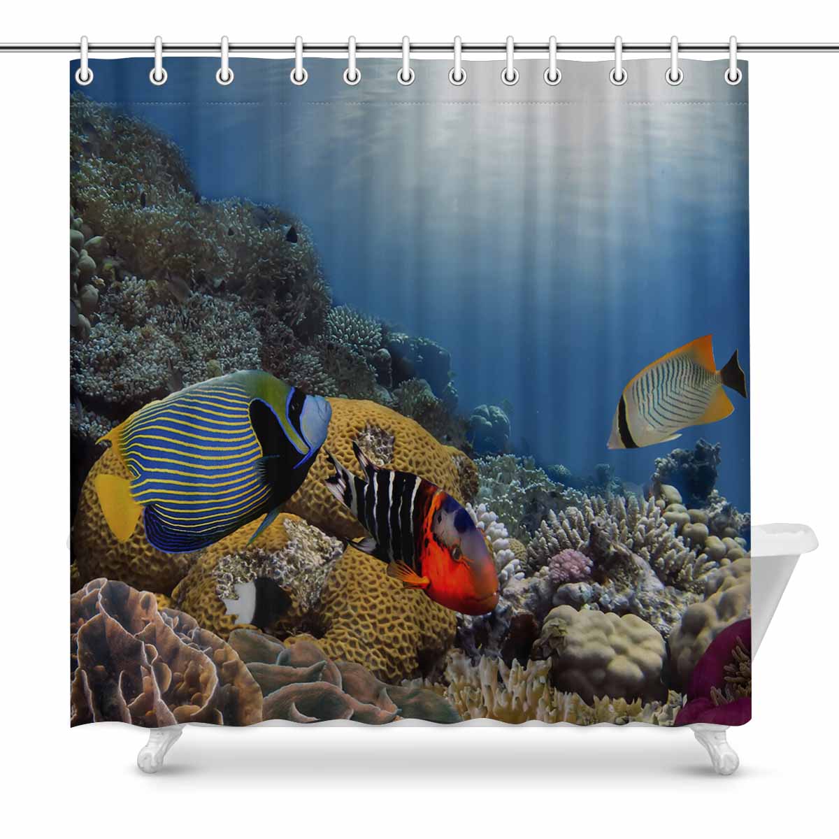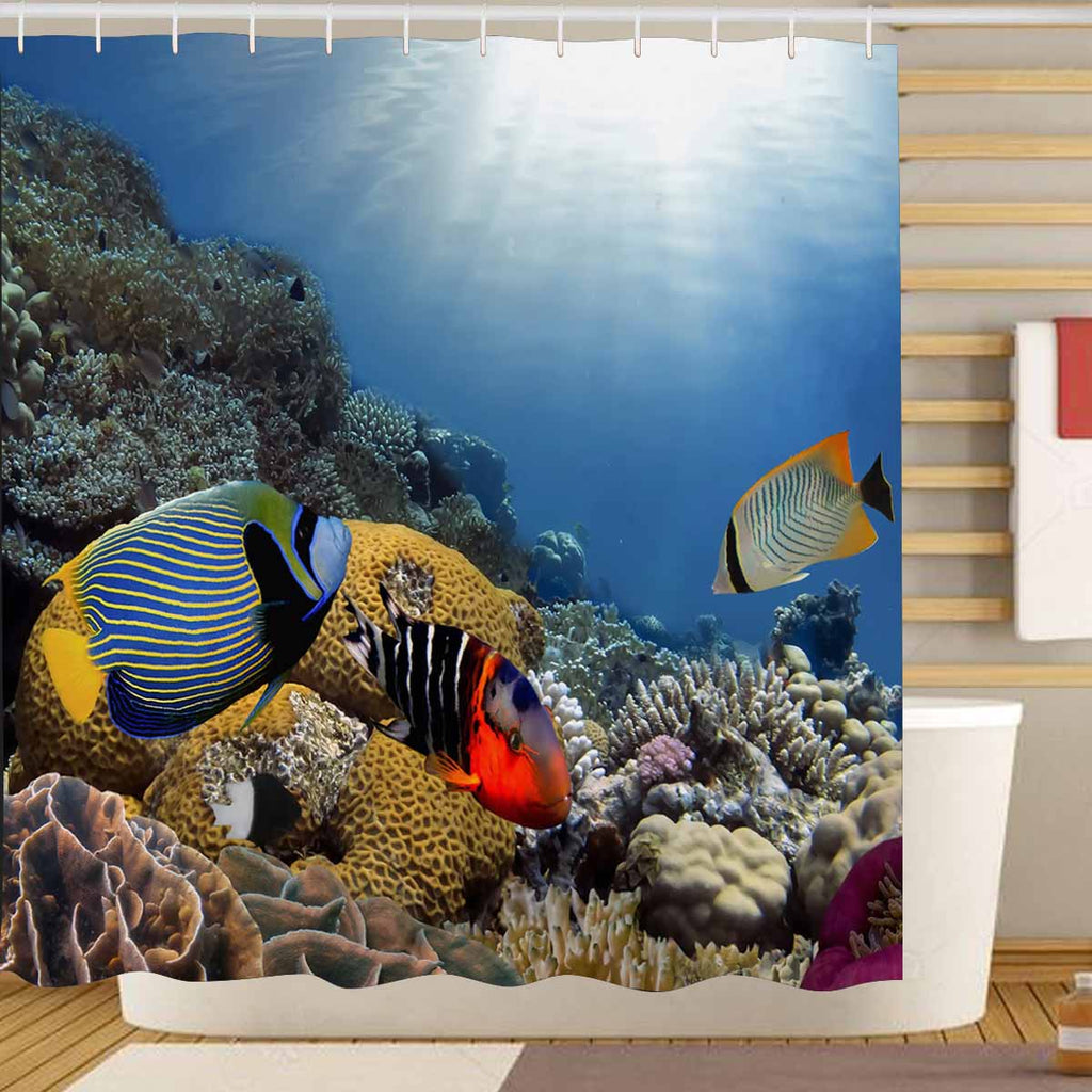Seaworld themed print on shower curtains for bathroom, create a brilliant atmosphere in your bathroom, include a selection of different stylish and custom-made designs for your bath decoration.