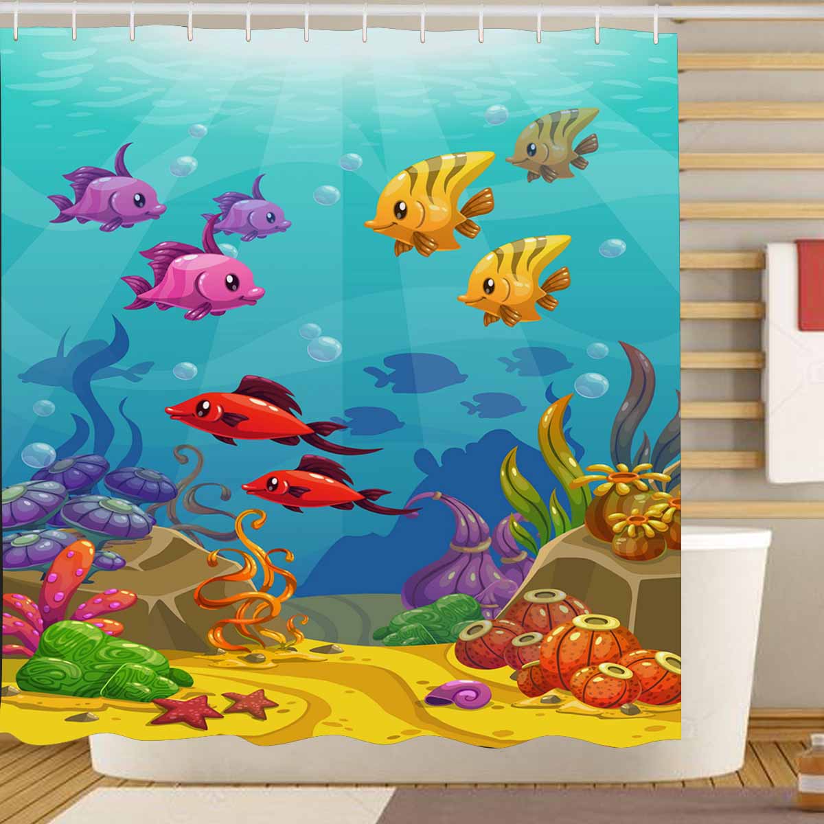 Seaworld themed print on shower curtains for bathroom, create a brilliant atmosphere in your bathroom, include a selection of different stylish and custom-made designs for your bath decoration.
