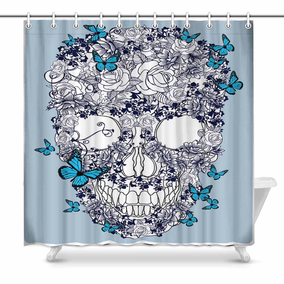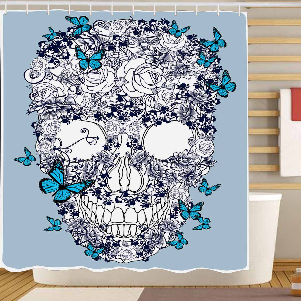Skull themed print on shower curtains for bathroom, create a brilliant atmosphere in your bathroom, include a selection of different stylish and custom-made designs for your bath decoration.