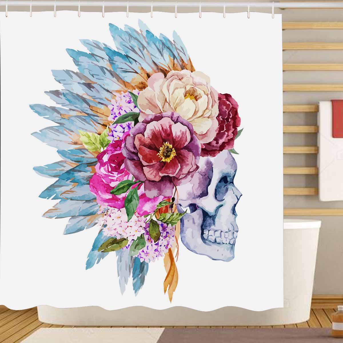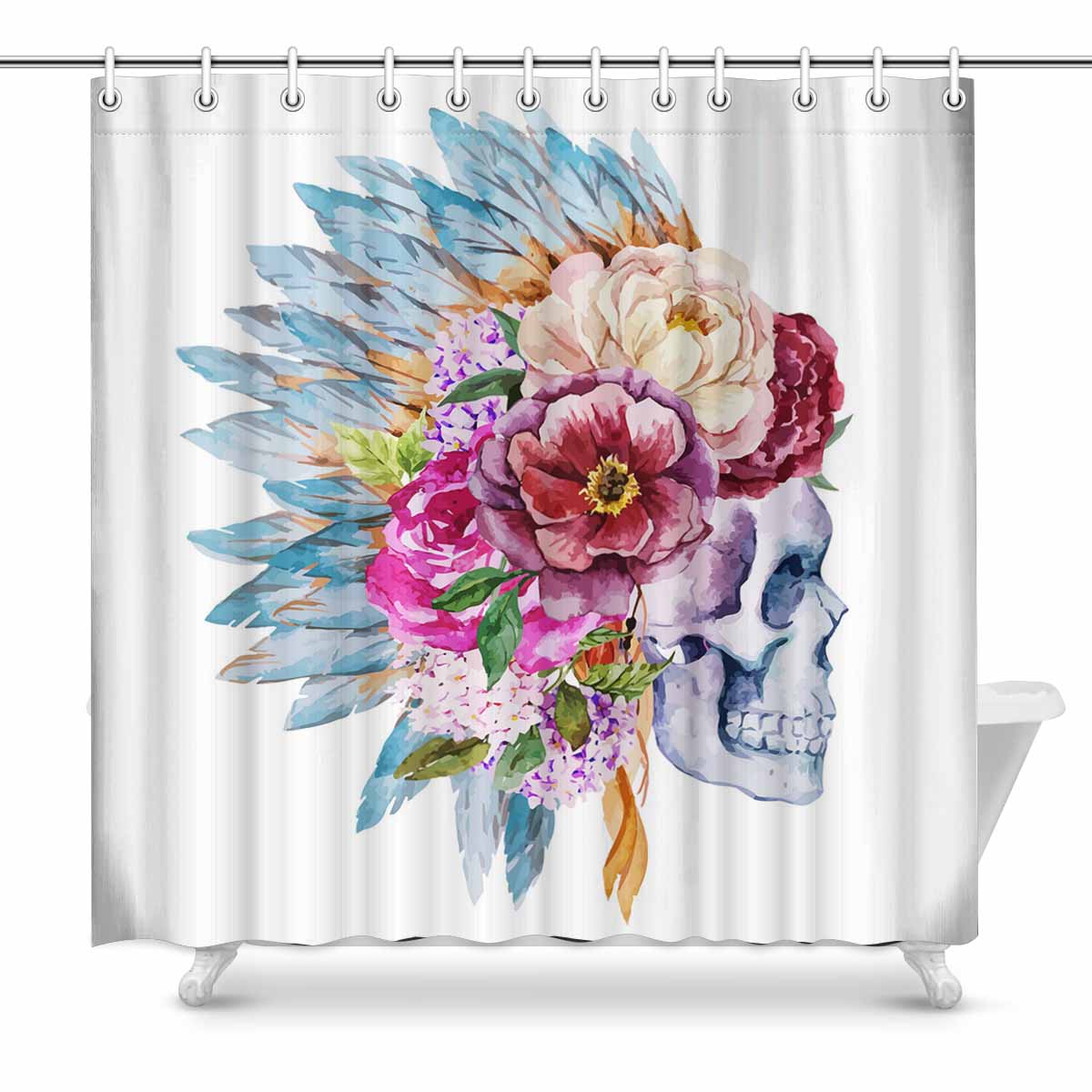 Skull themed print on shower curtains for bathroom, create a brilliant atmosphere in your bathroom, include a selection of different stylish and custom-made designs for your bath decoration.