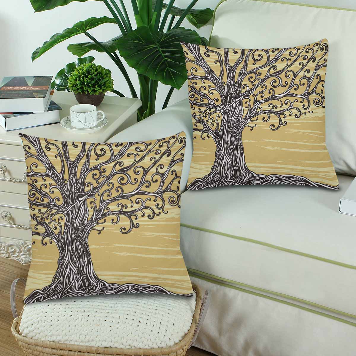 Pillow Case printed with Old graphic tree with twisted roots on a brown background