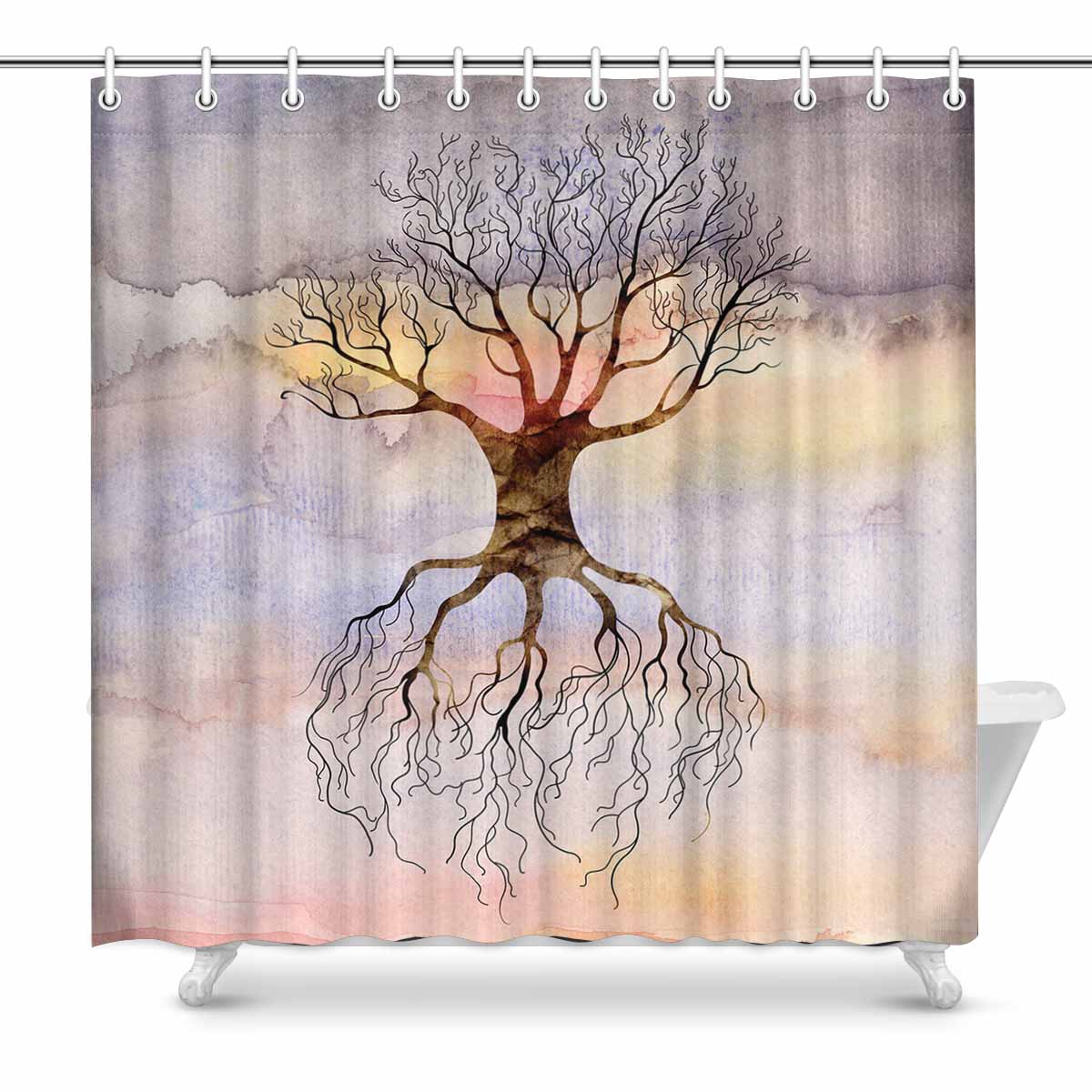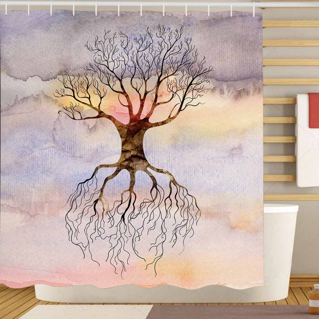 Three and Mouttain themed Shower Curtains beautiful tree on watercolor background of the sky with clouds