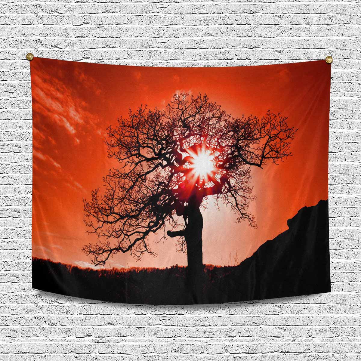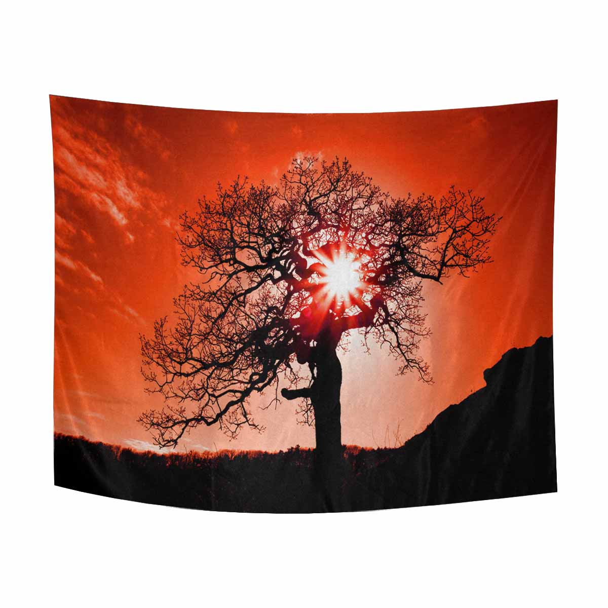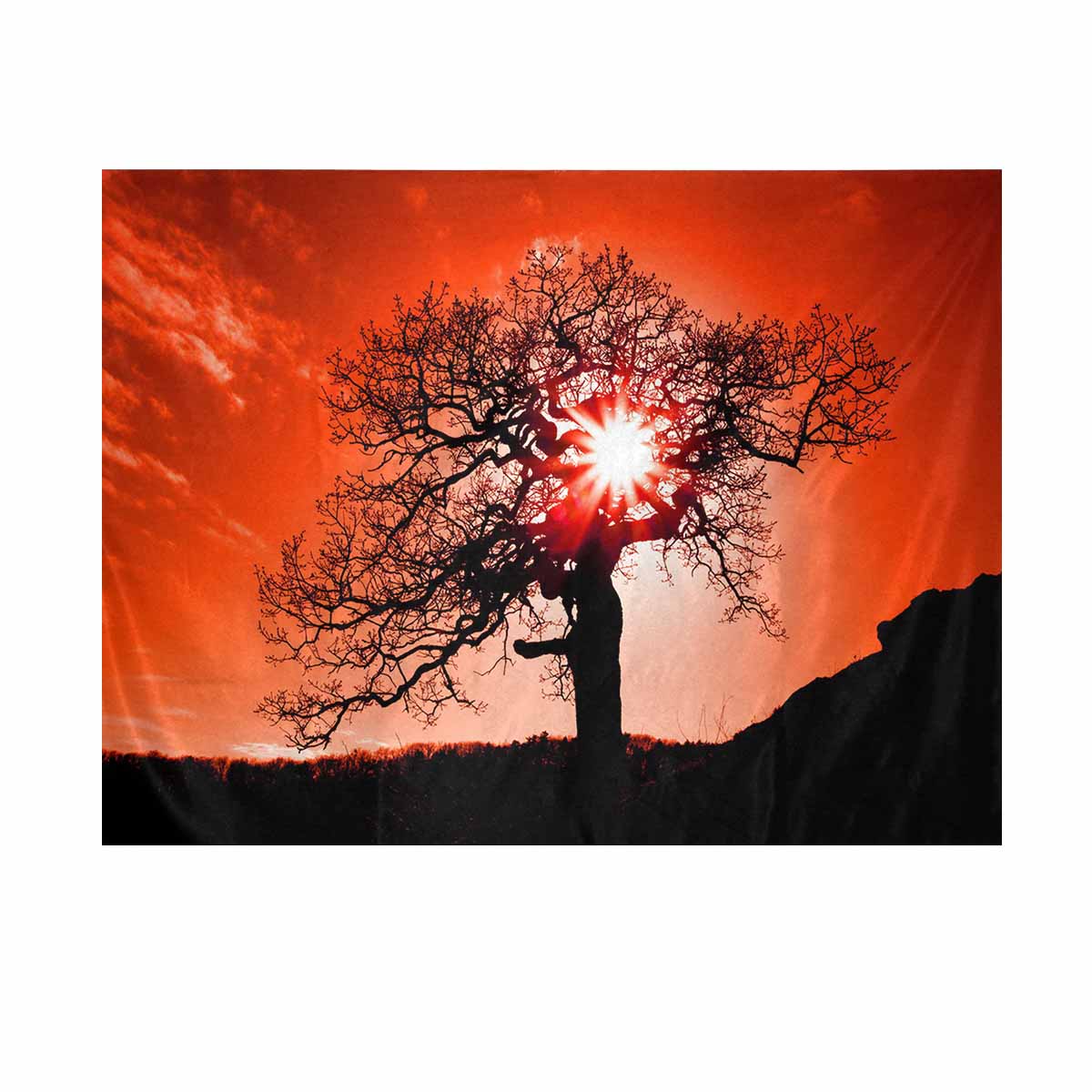 Tree and Moutain themed Wall Tapestries printed Old oak in sunset with sun