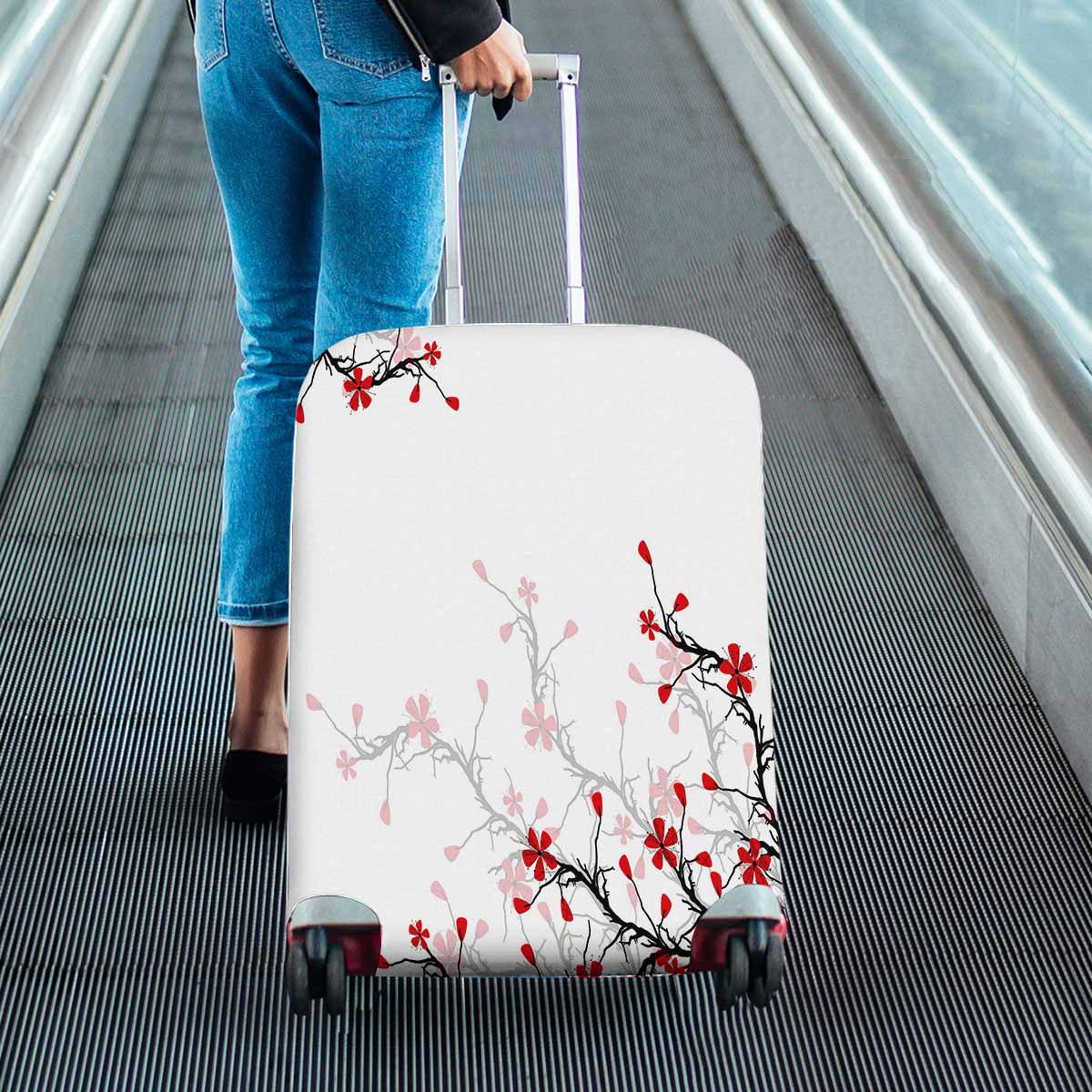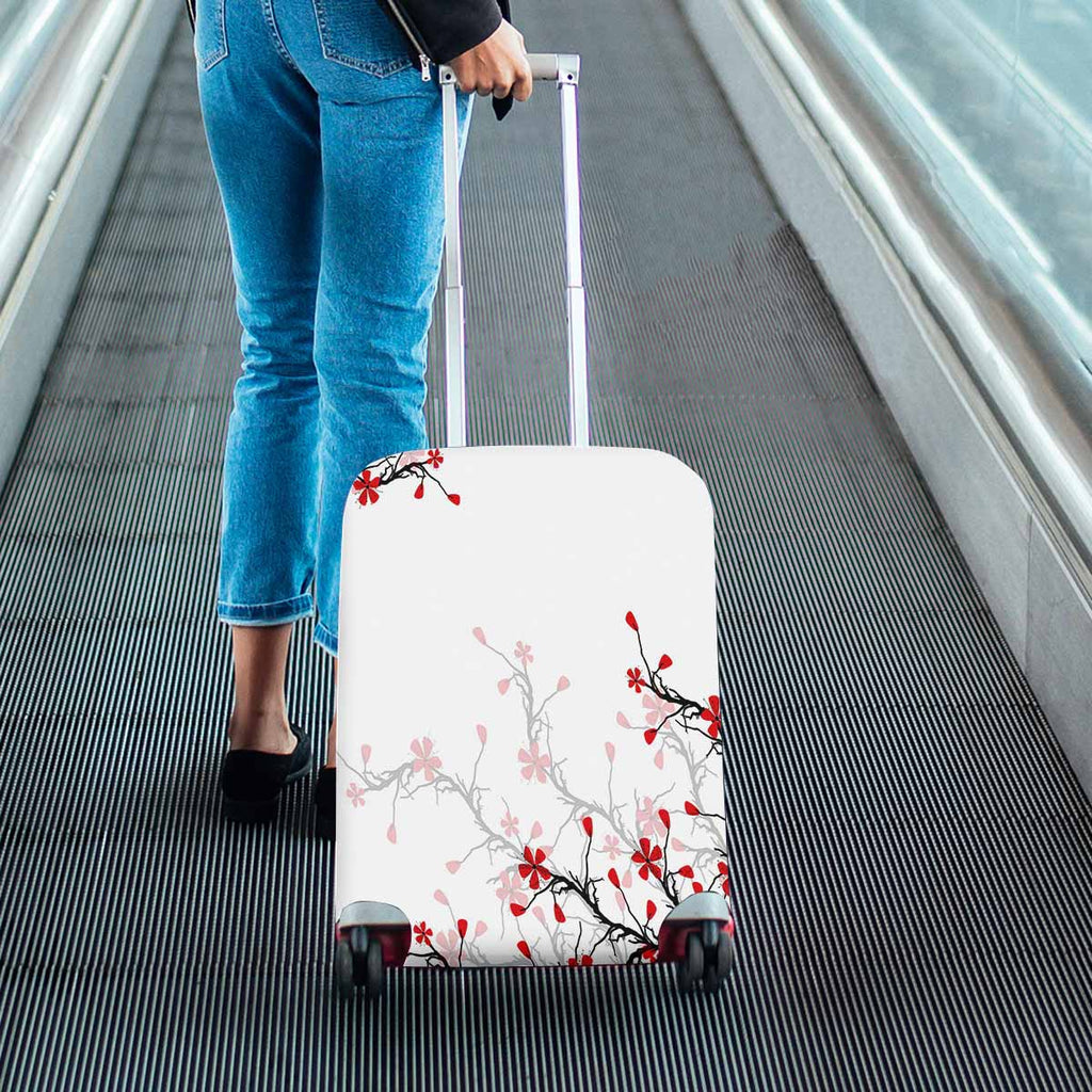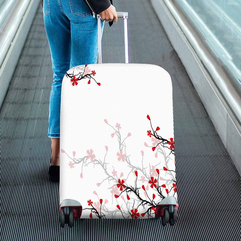 Tree Mountains themed Cover for Luggage suitcase printed Beautiful blossom cherry on pink background