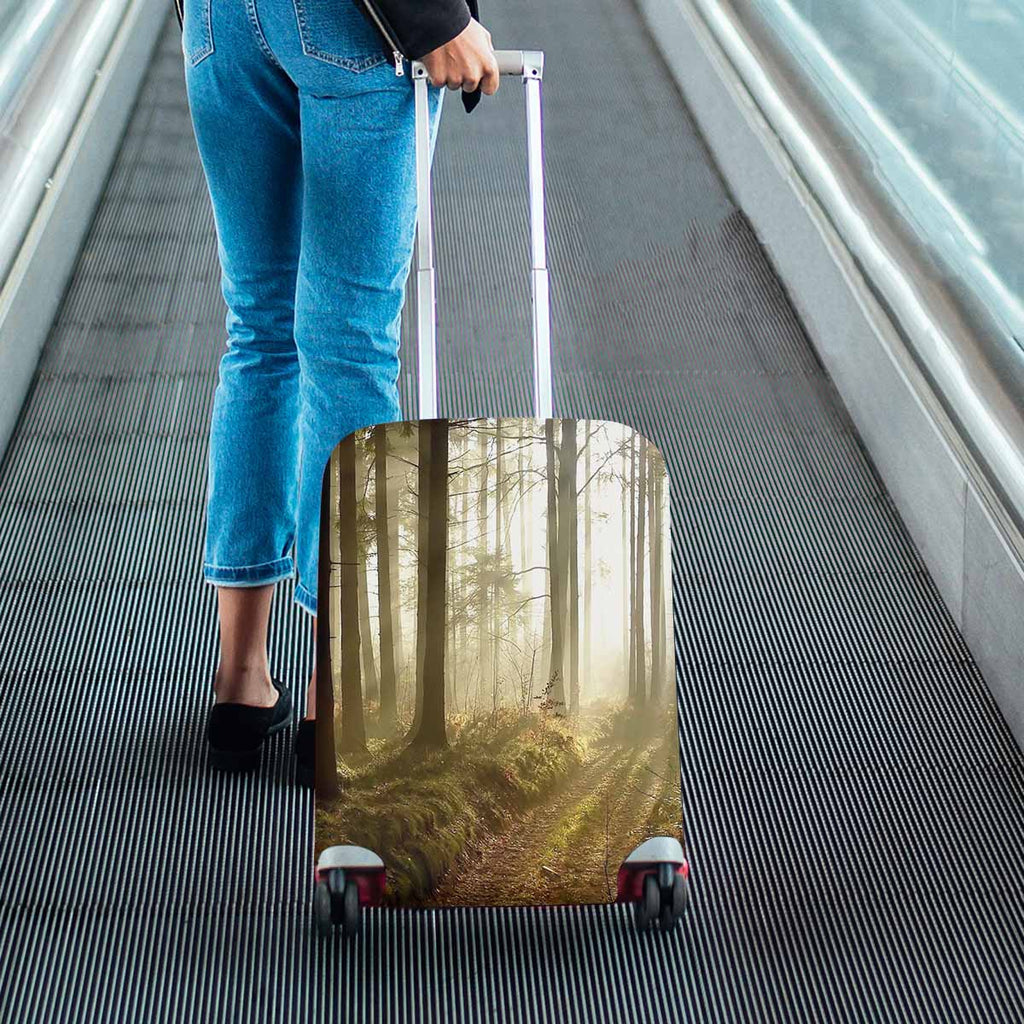 Tree Mountains themed Cover for Luggage suitcase printed Forest path at sunset
