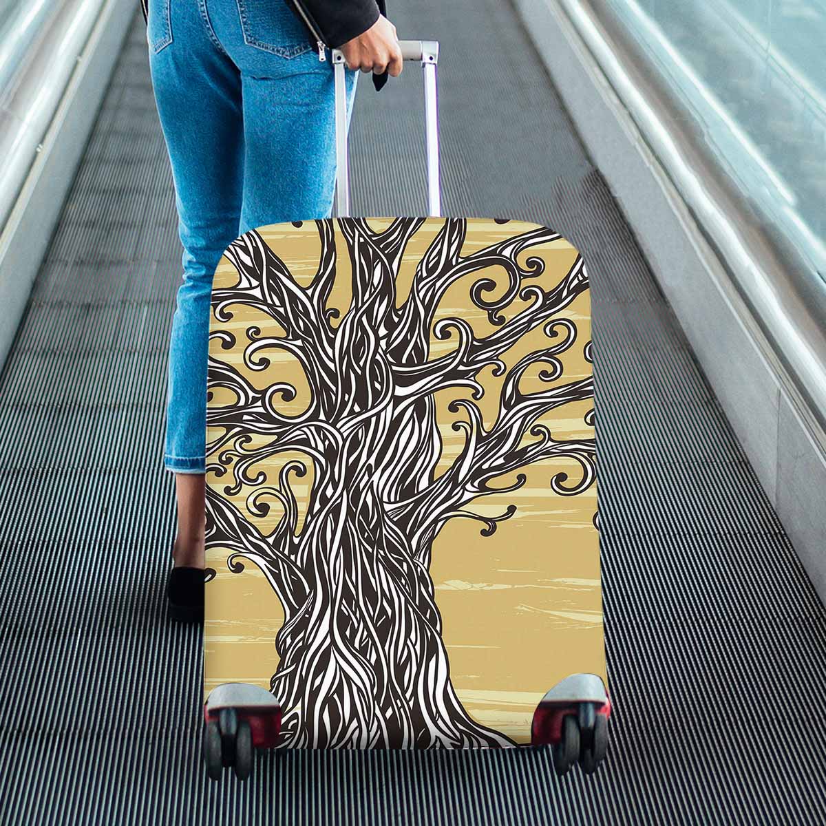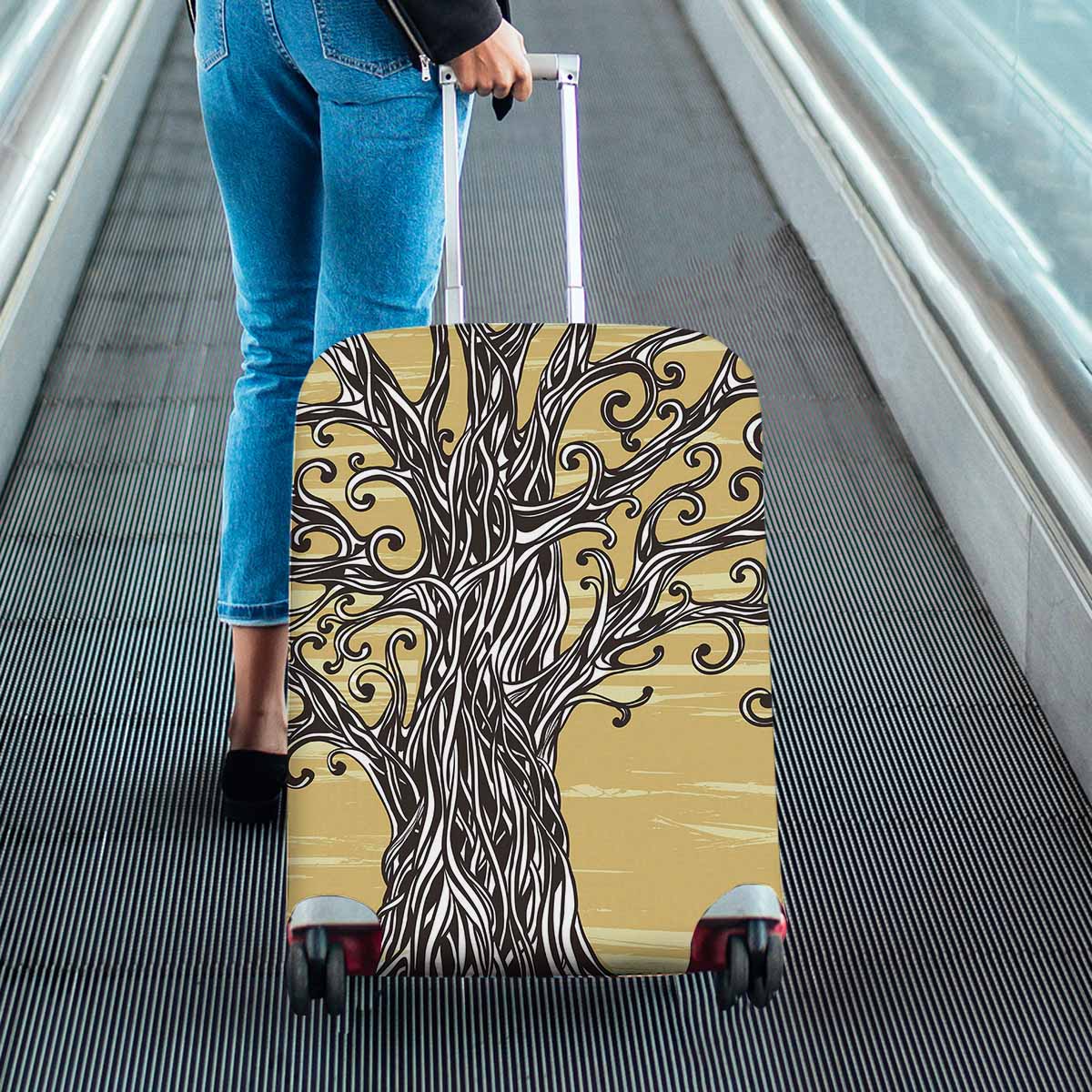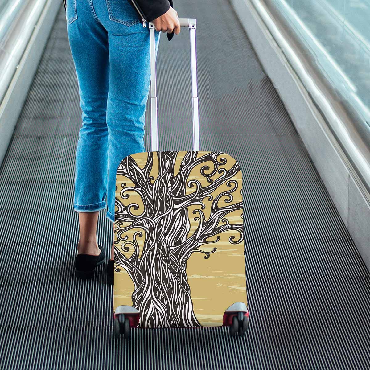 Tree Mountains themed Cover for Luggage suitcase printed Old graphic tree with twisted roots on a brown background