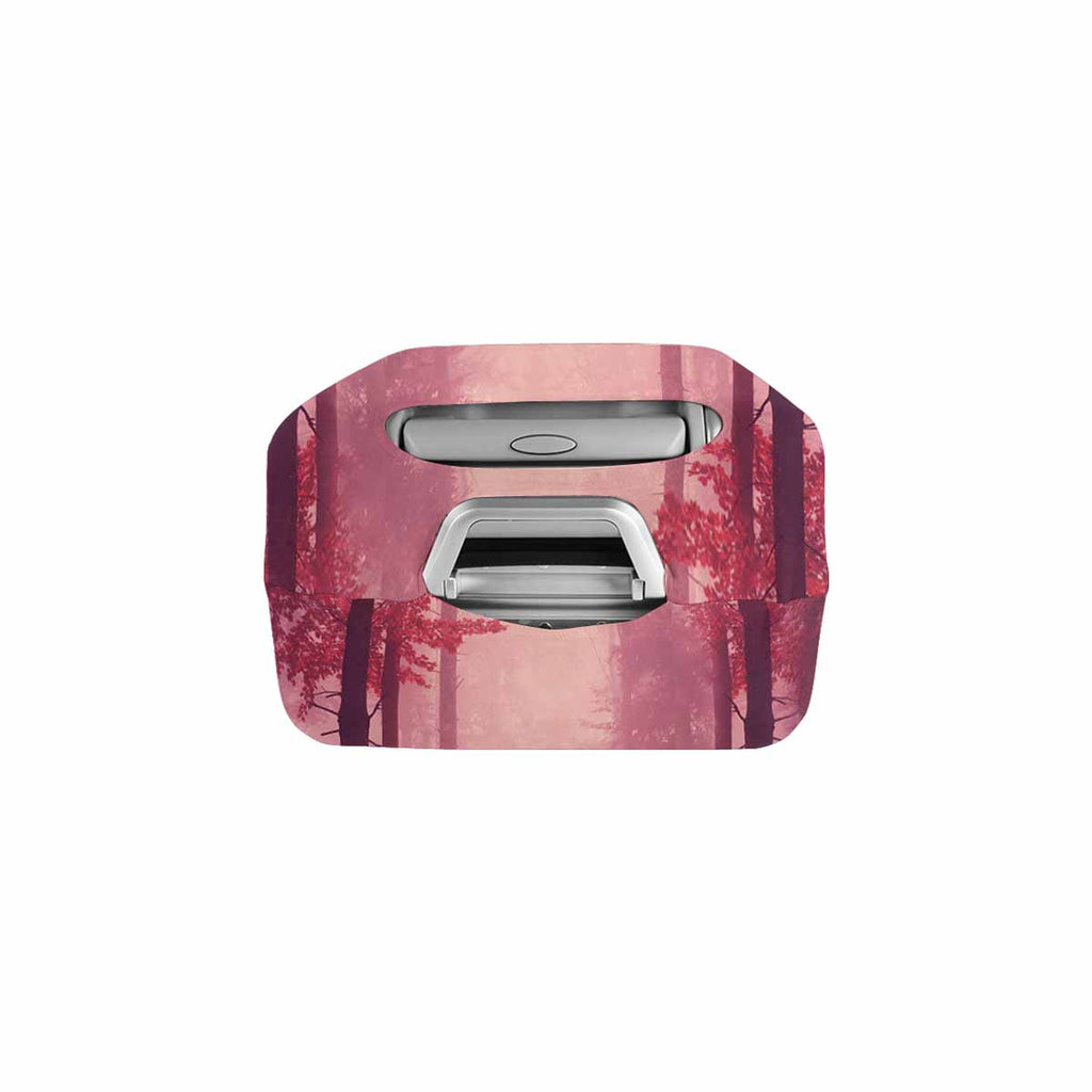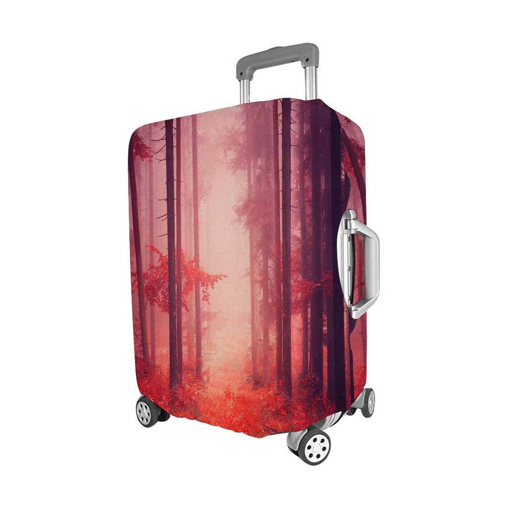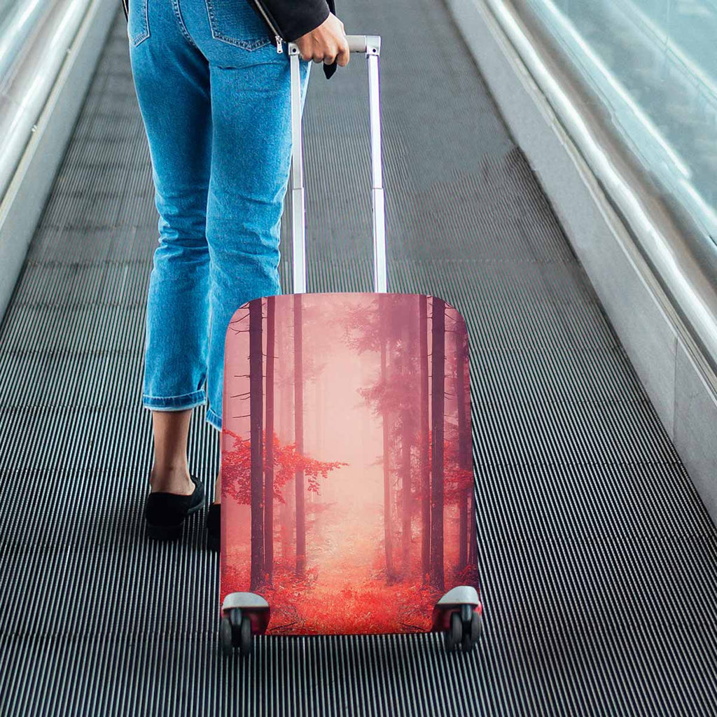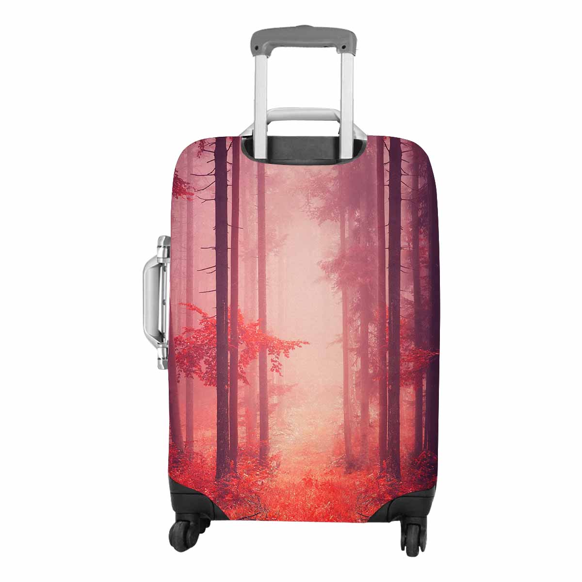 Tree Mountains themed Cover for Luggage suitcase printed Red color saturated foggy fantasy forest scene with path