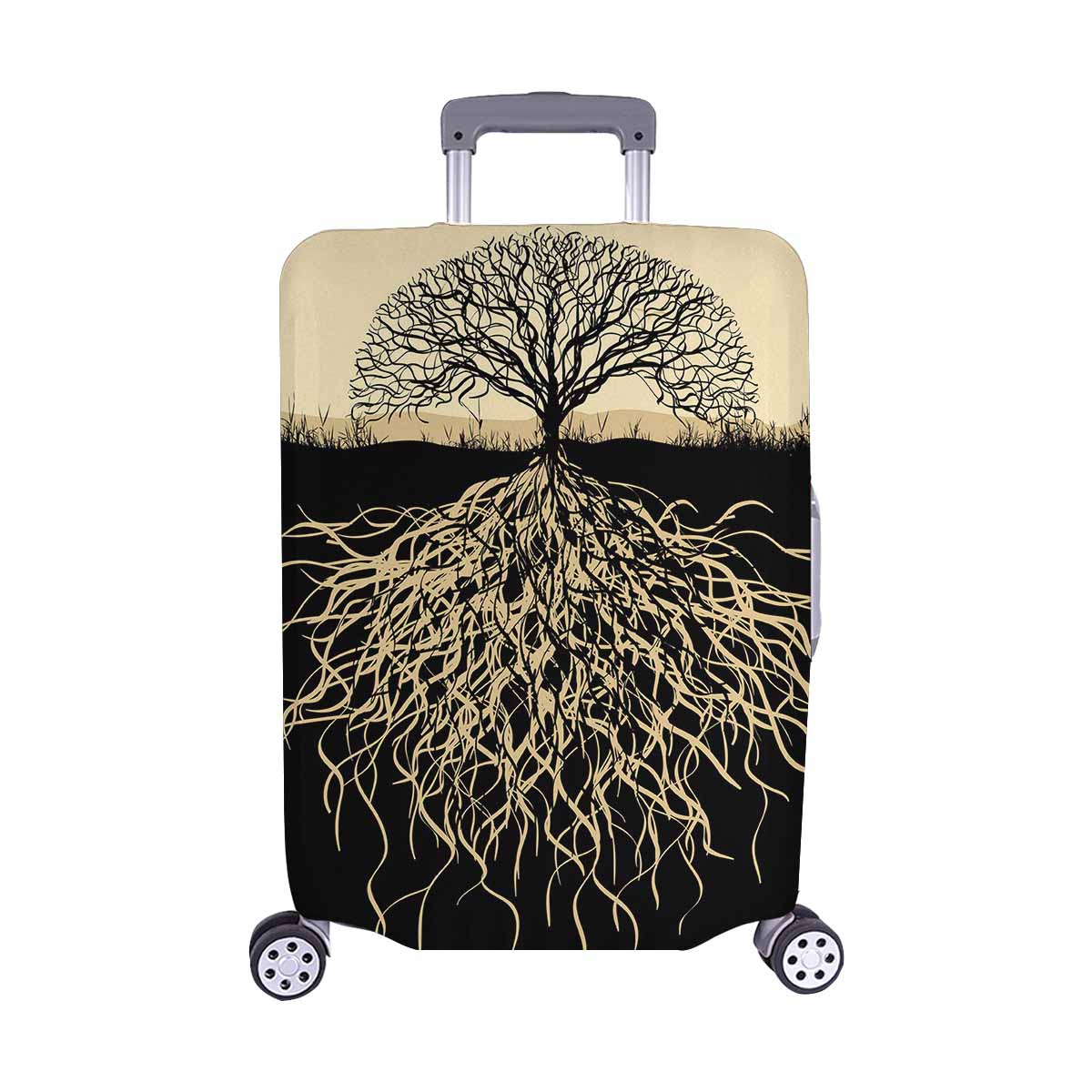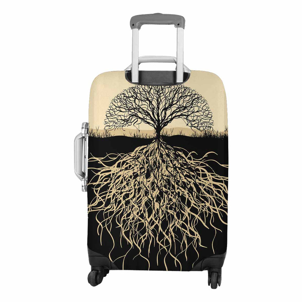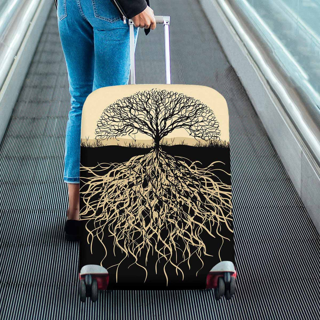Tree Mountains themed Cover for Luggage suitcase printed Tree silhouette with roots