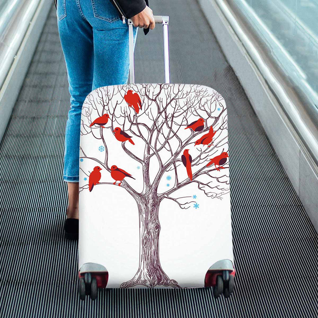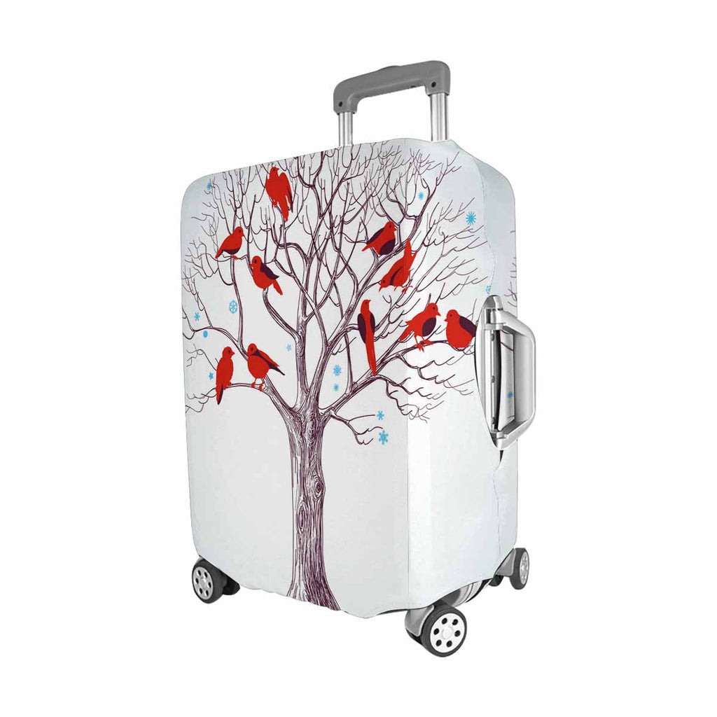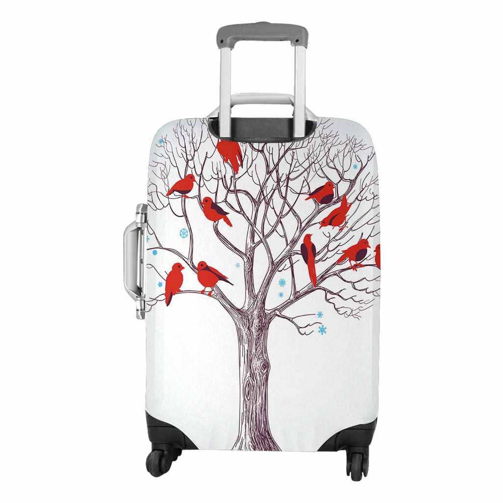 Tree Mountains themed Cover for Luggage suitcase printed Winter tree with red birds