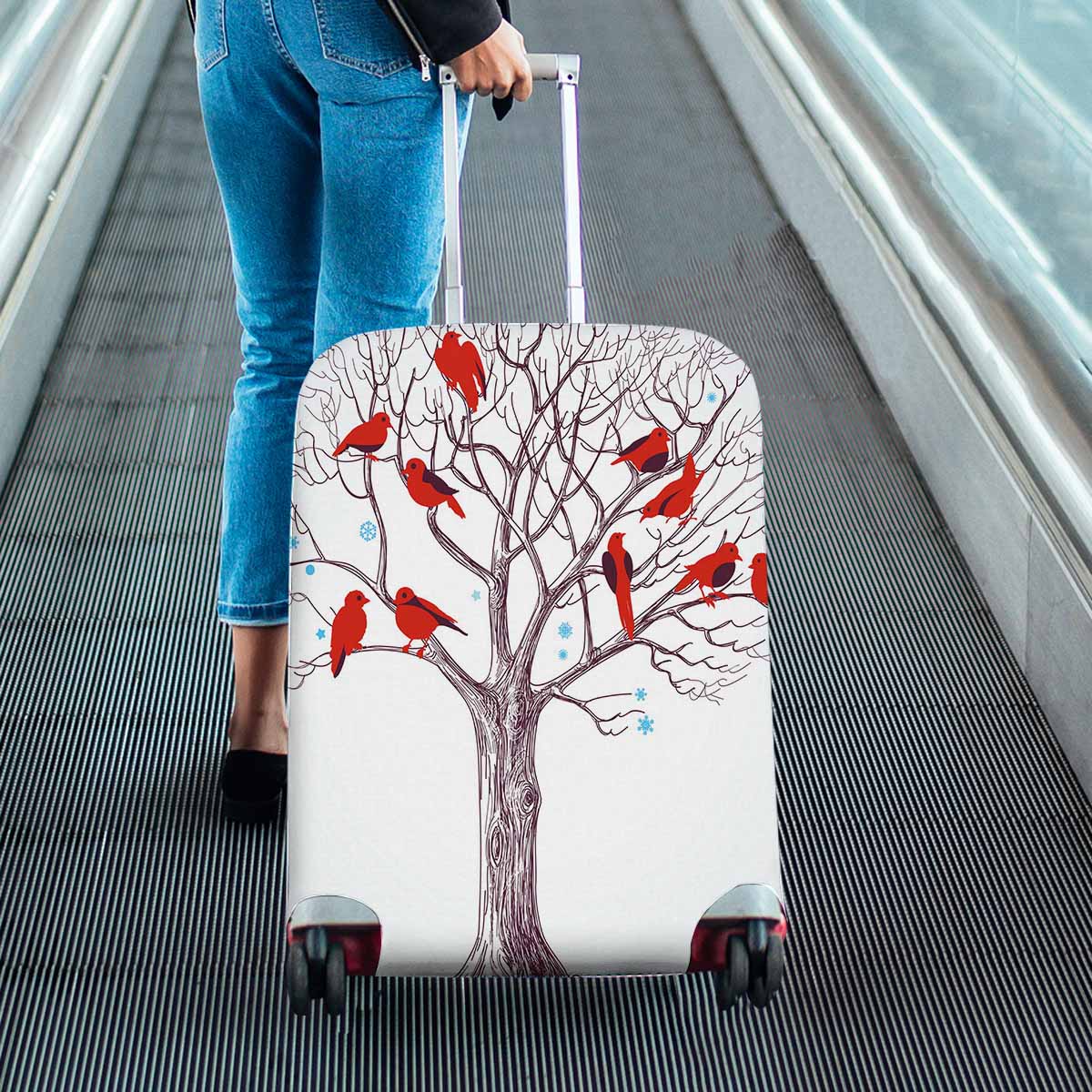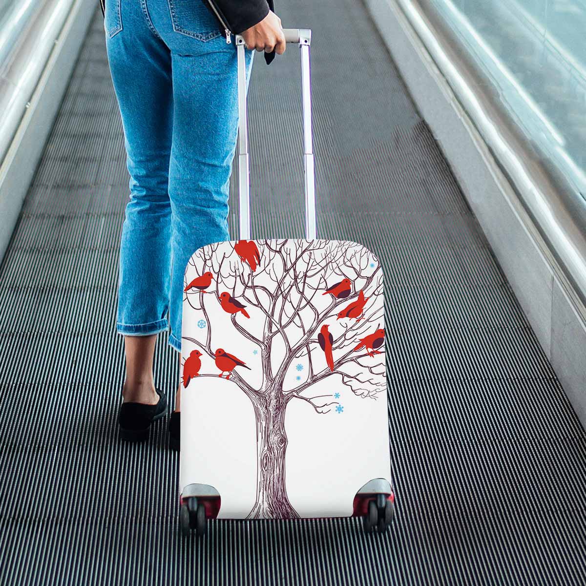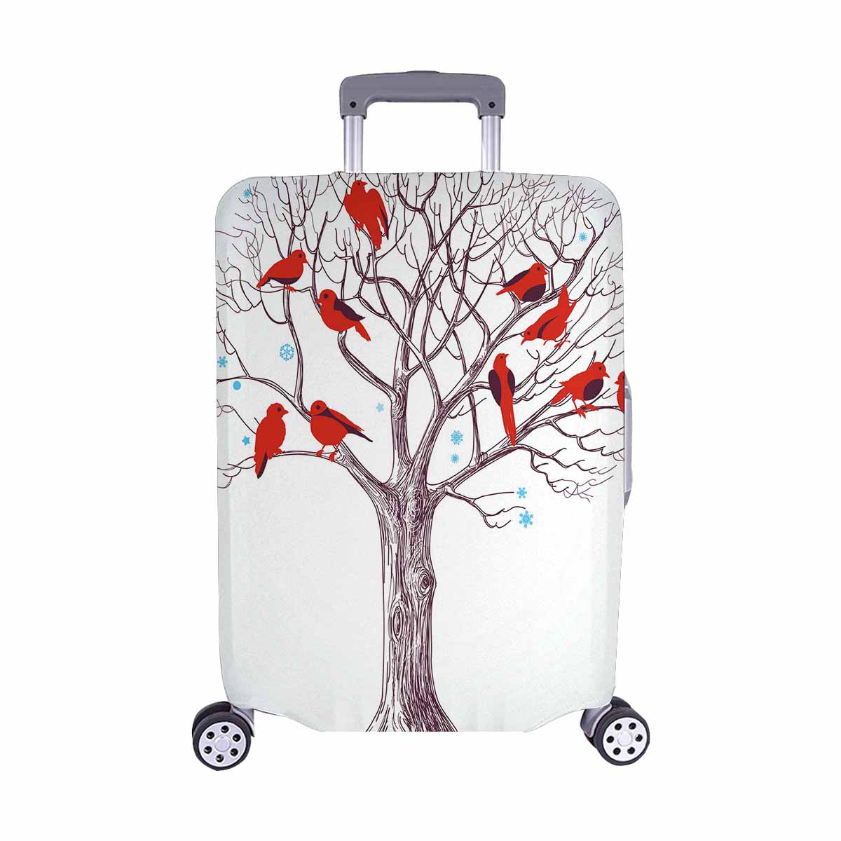 Tree Mountains themed Cover for Luggage suitcase printed Winter tree with red birds