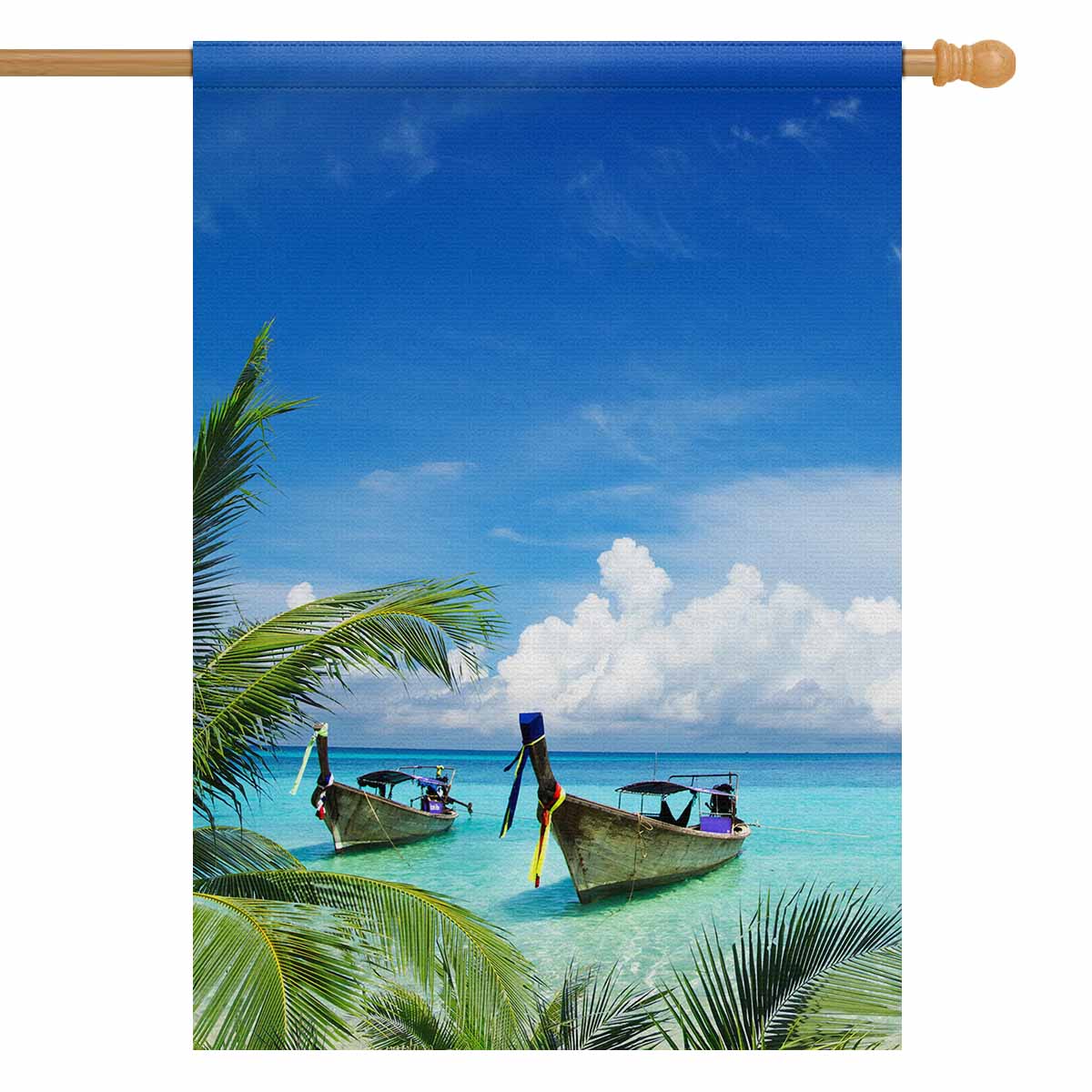 Garden Flags printed tropical themed with beautiful beach and tropical sea