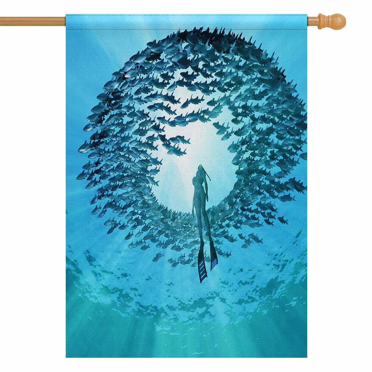 Features sleeve at top that fits standard flagpoles or stands, sold separately.