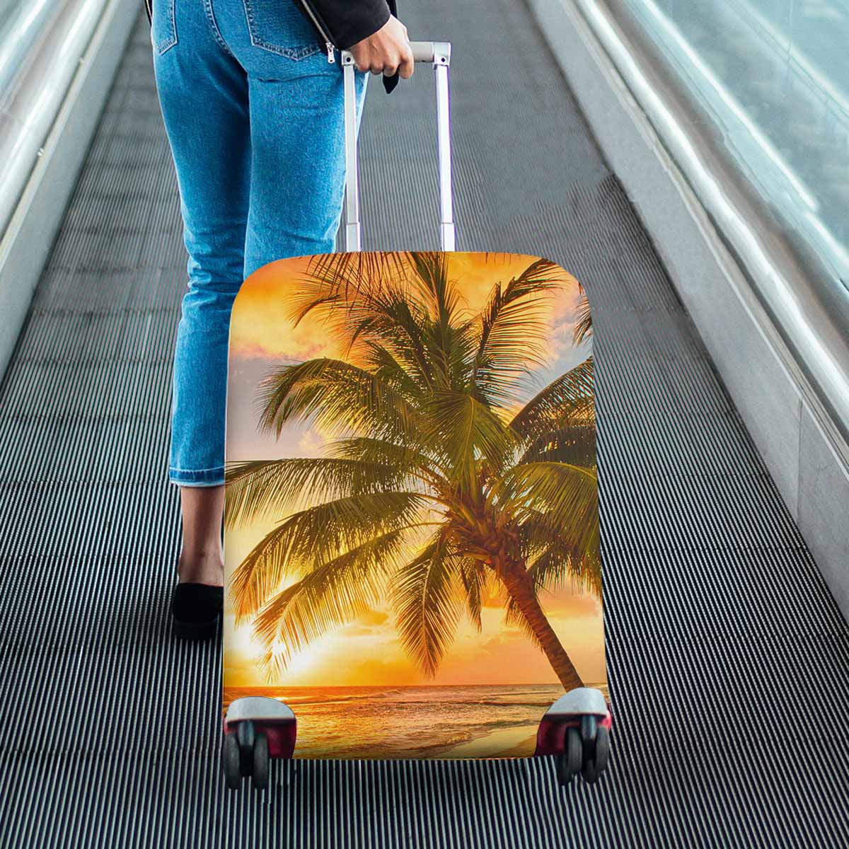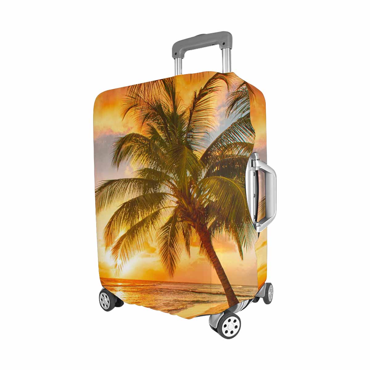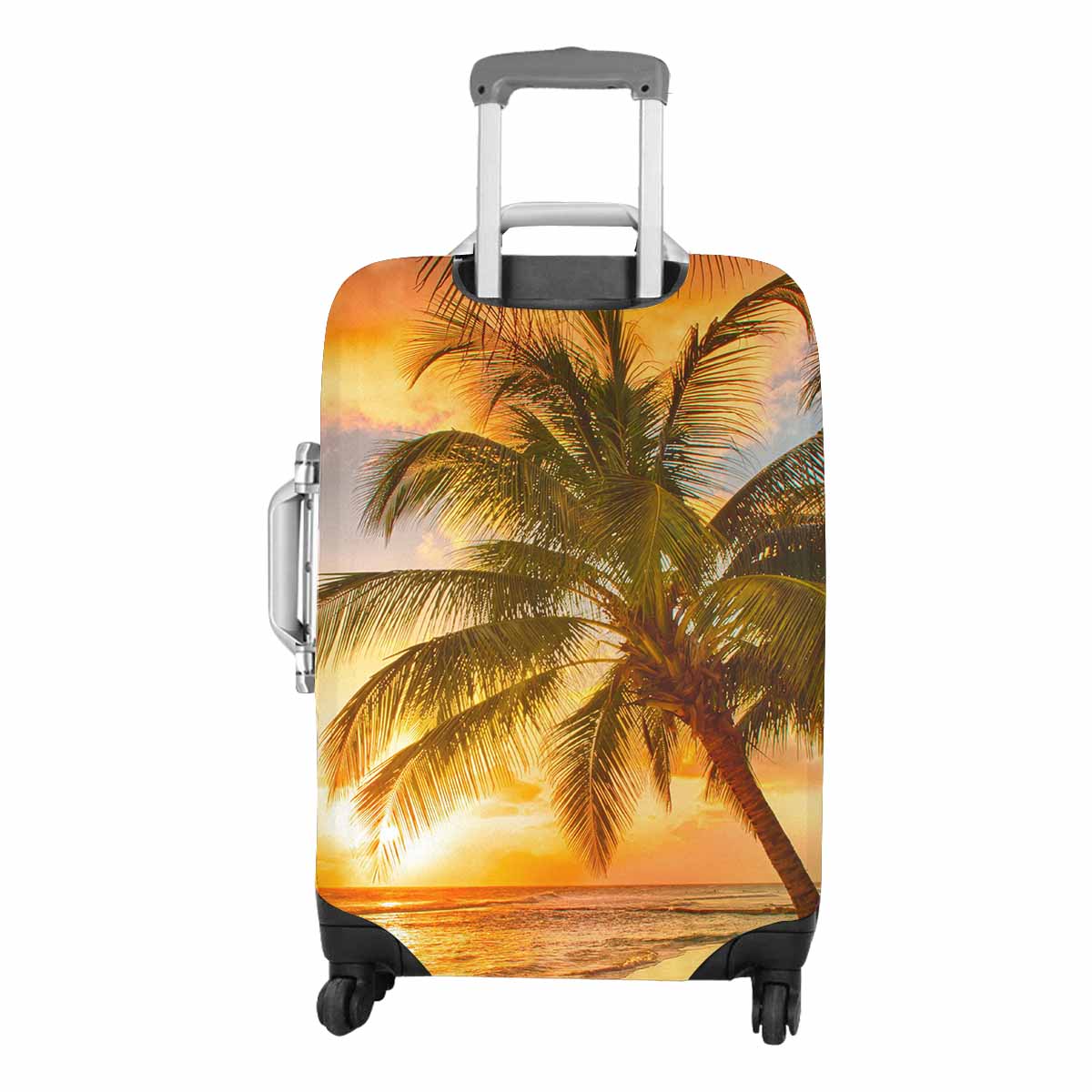 Tropical themed Cover for Luggage suitcase printed sunset over the sea with a view at palms on the white beach on a Caribbean island