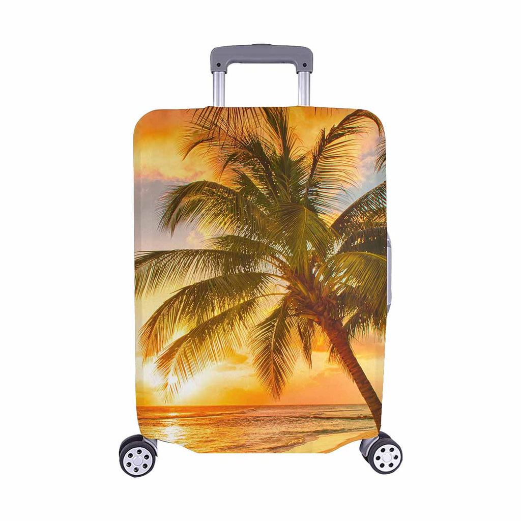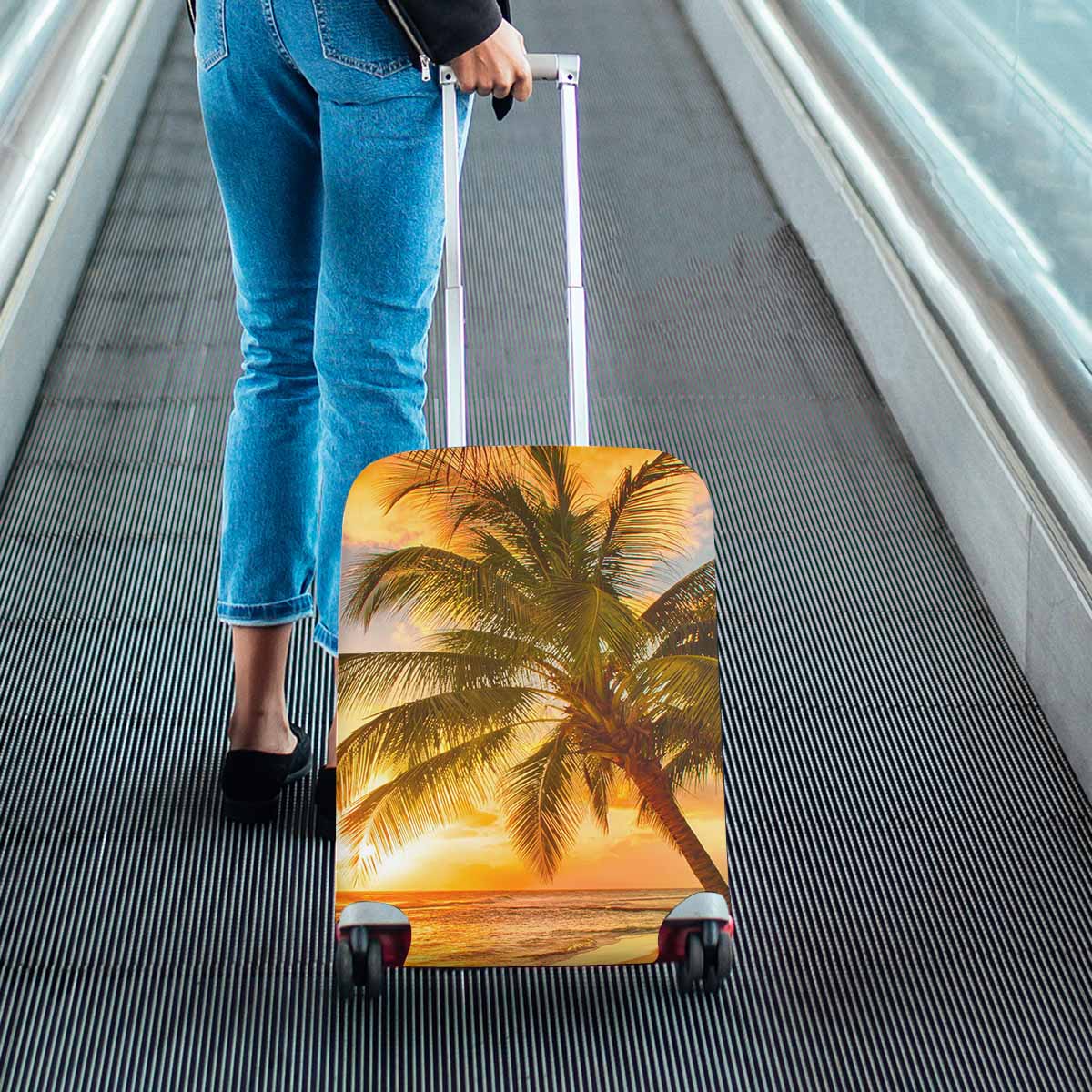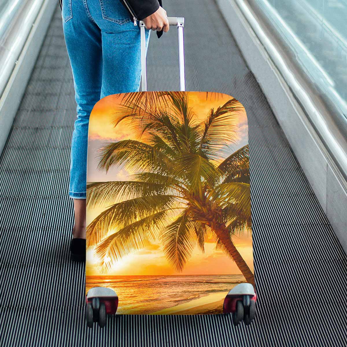 Tropical themed Cover for Luggage suitcase printed sunset over the sea with a view at palms on the white beach on a Caribbean island