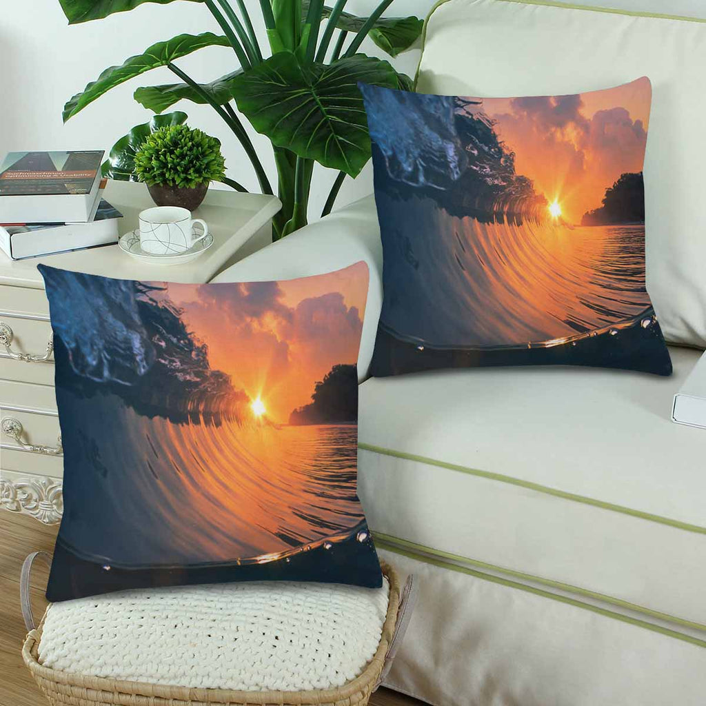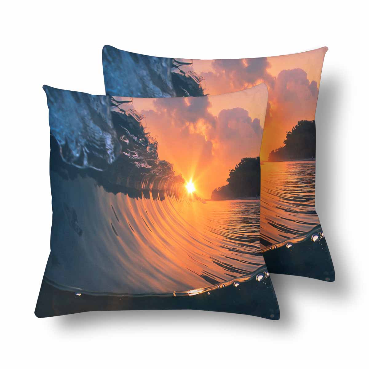 Tropical themed Pillow Cases printed with Beautiful ocean surfing wave at sunset beach
