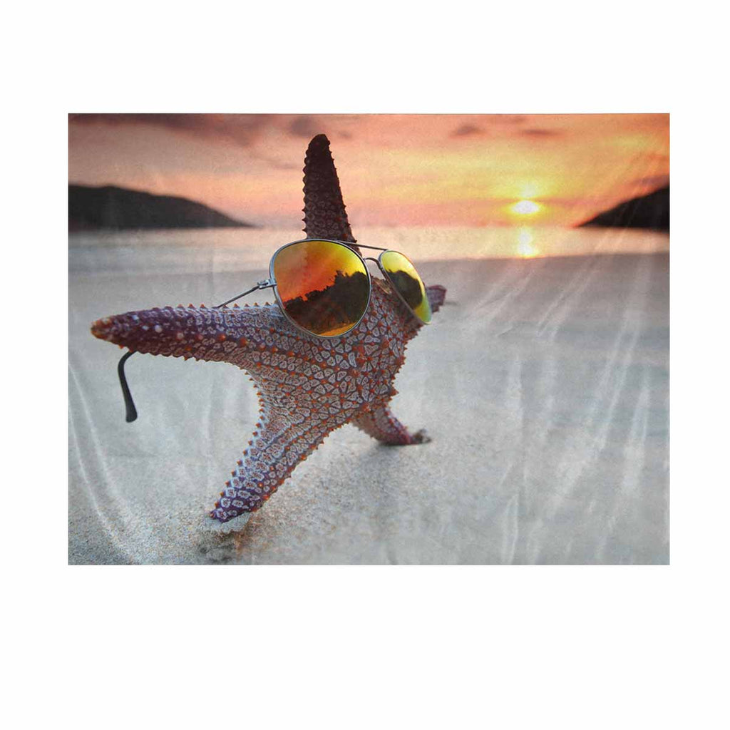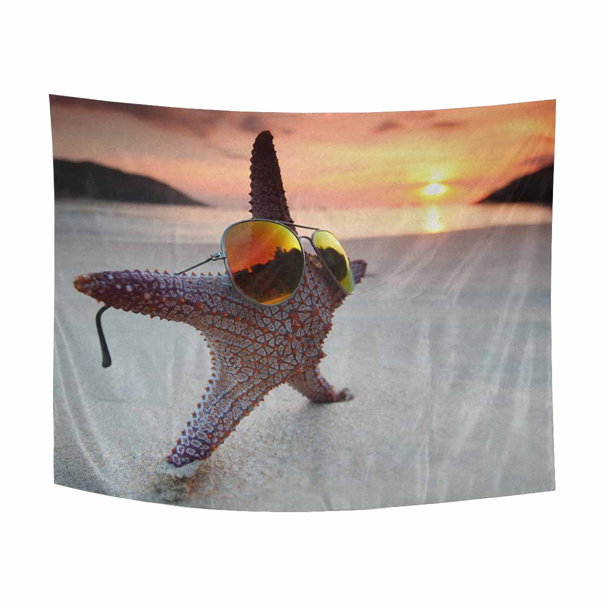 Tropical themed Wall Tapestries printed starfish in sunglasses on the beach and beautiful sunset over the sea backgroud