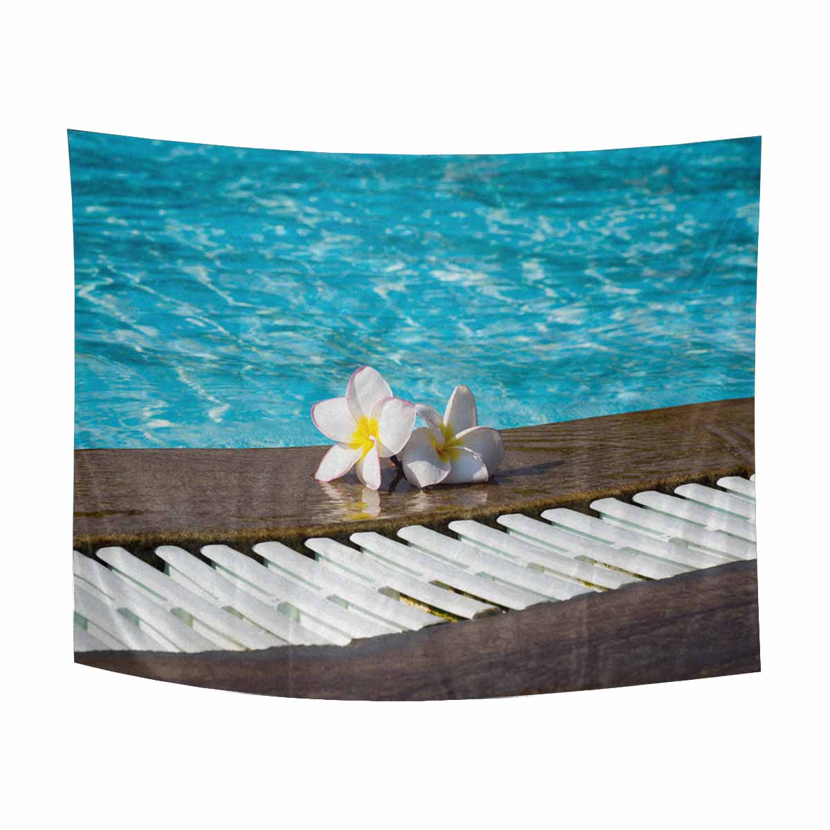 Tropical themed Wall Tapestries printed Tropical flower Plumeria on swimming pool
