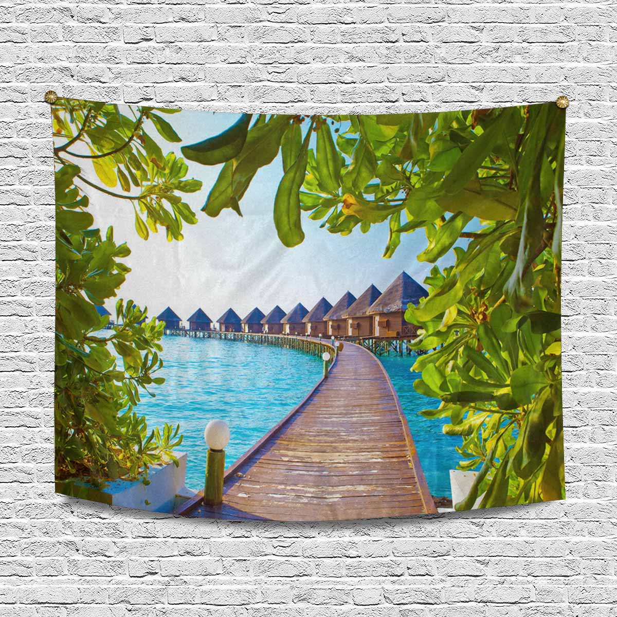 Tropical themed Wall Tapestries printed Villa on piles on water