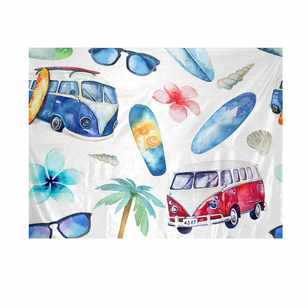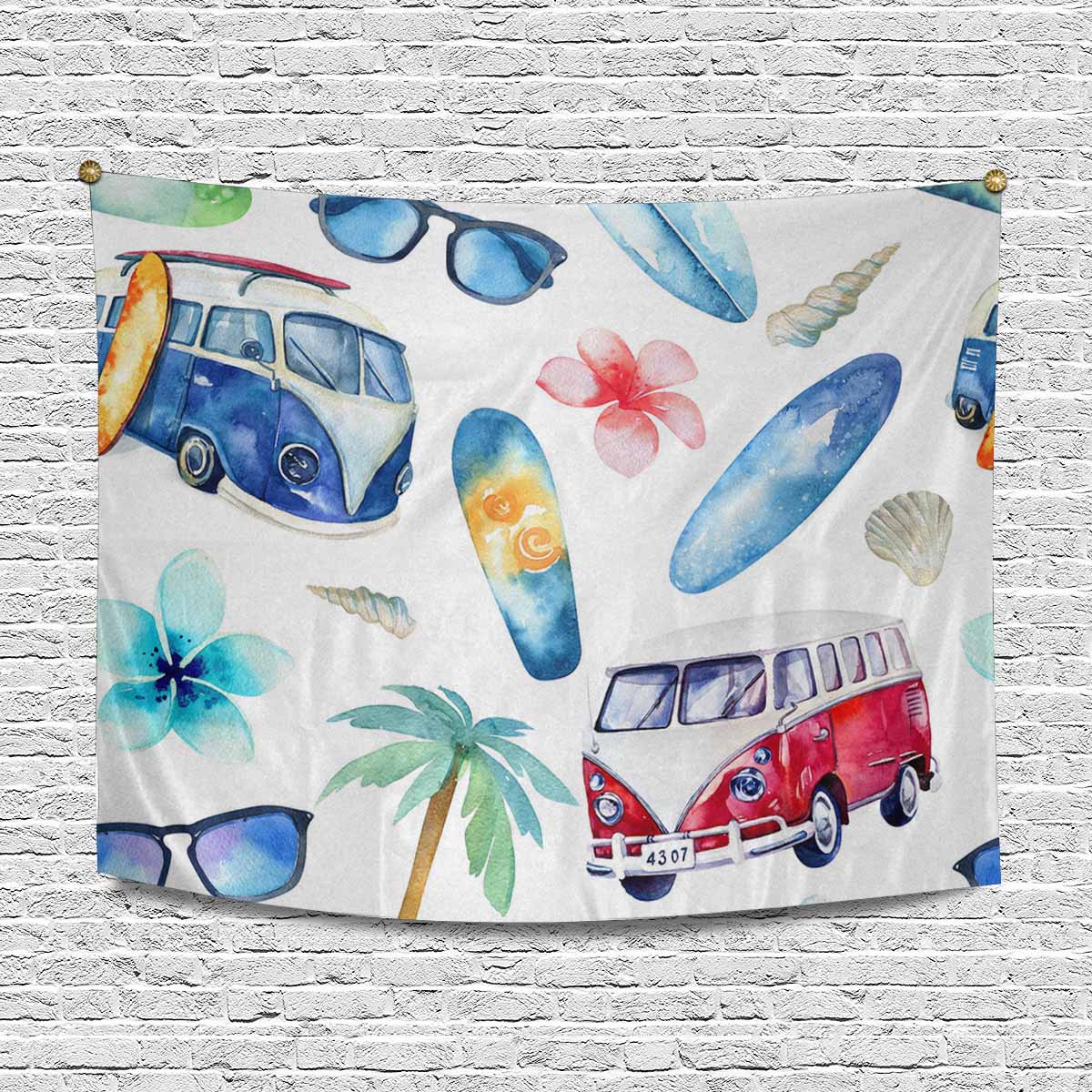 Tropical themed Wall Tapestries printed watercolor ocean surfing set beach holiday tropical travel adventure wagon bus