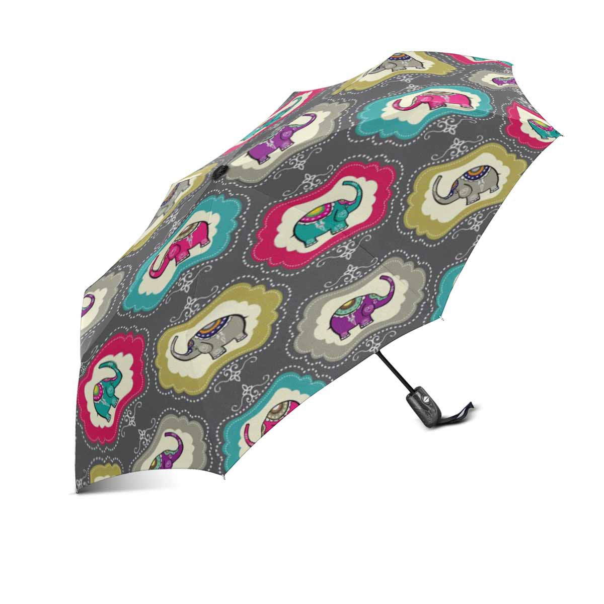 Aztec geometric Elephants pattern automatic umbrella foldable with totes