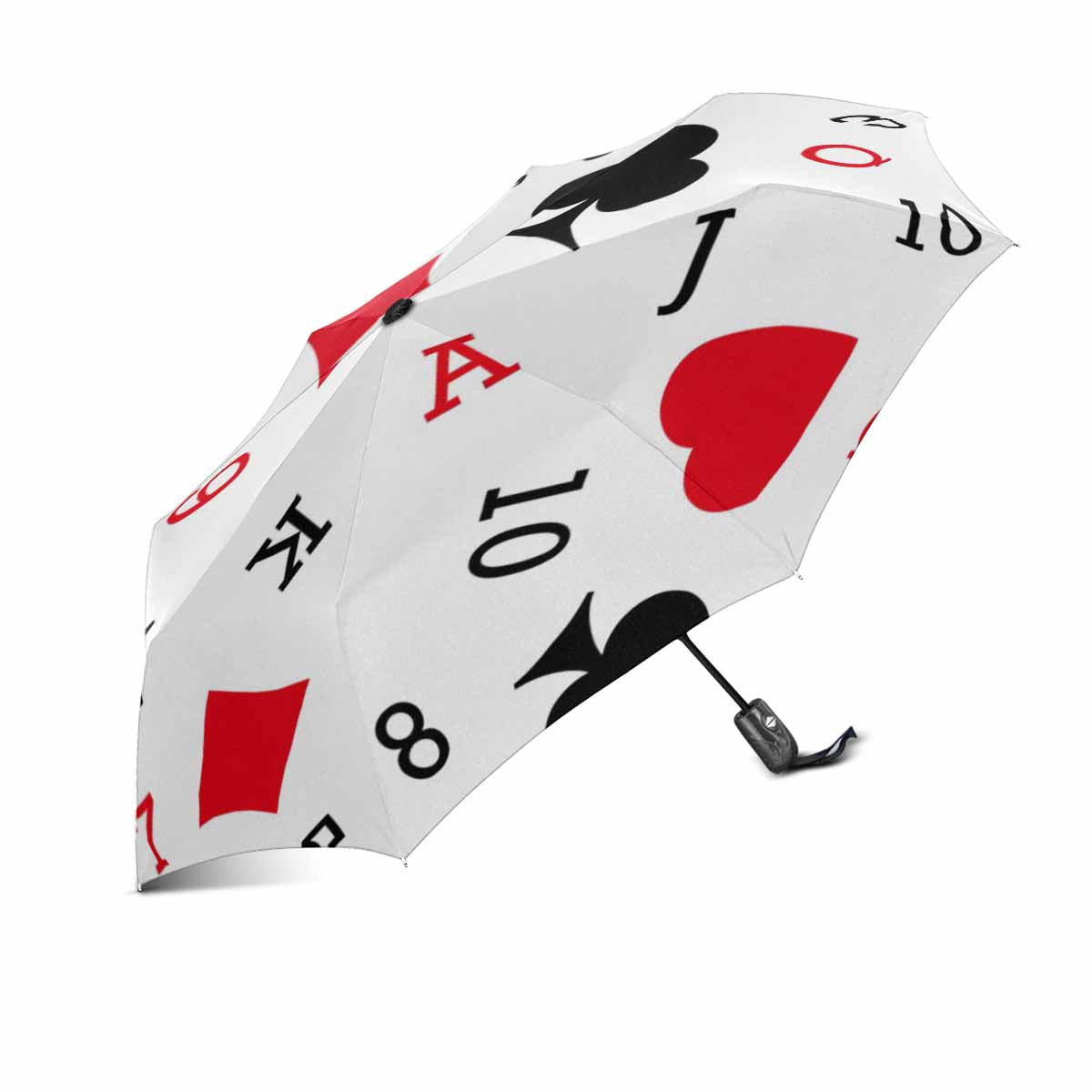 Black red Playcard icons pattern print on Automatic Foldable Umbrella with totes