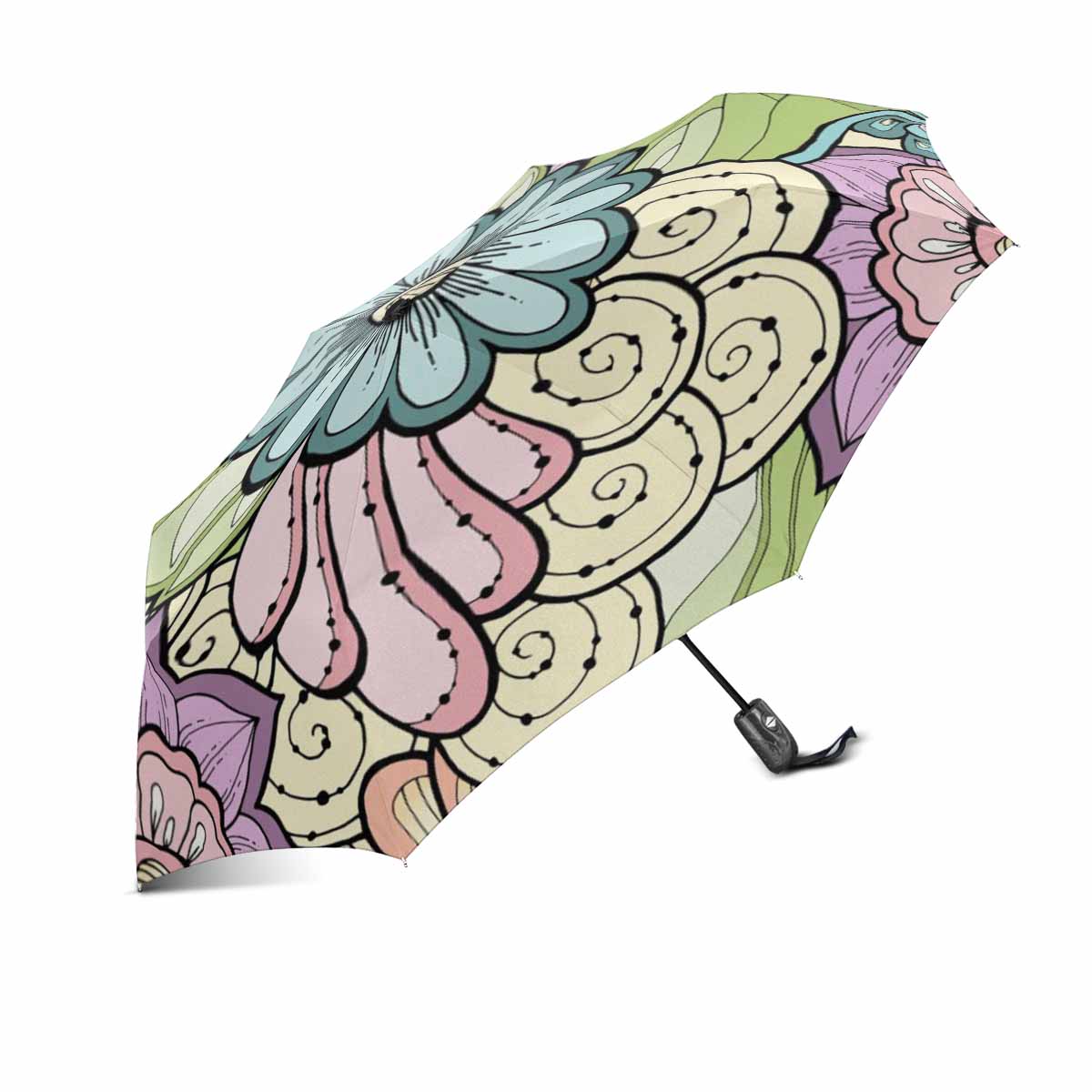 colorful ethnic stylized flowers pattern Umbrella Automatic Foldable with totes