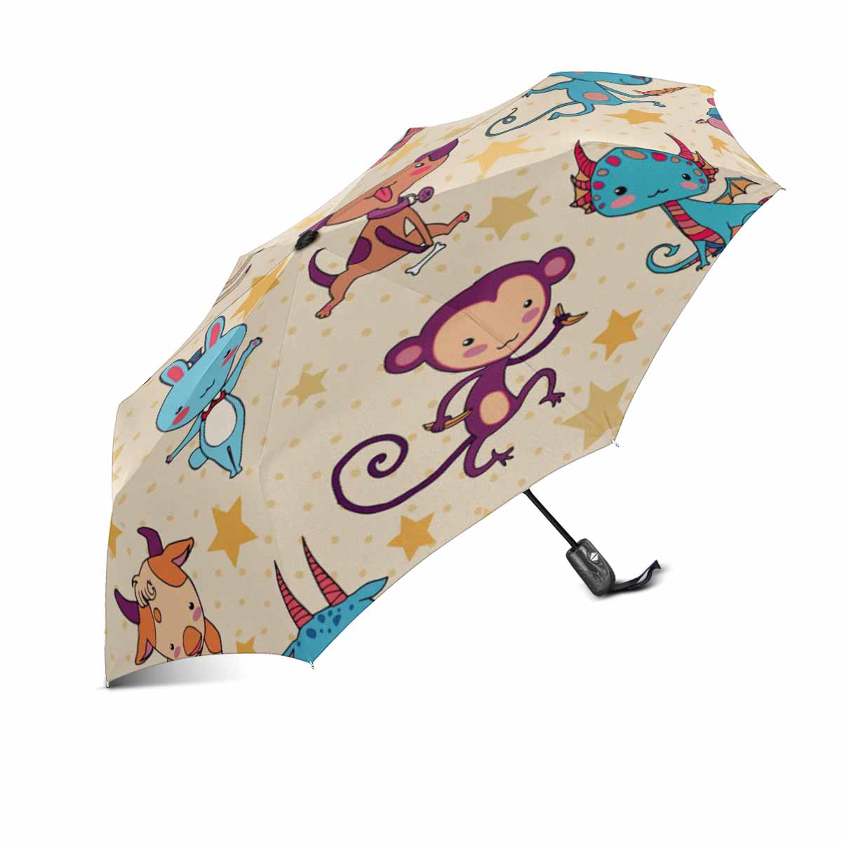 Cute Chinese zodiac animals pattern totes umbrella automatic windproof foldable