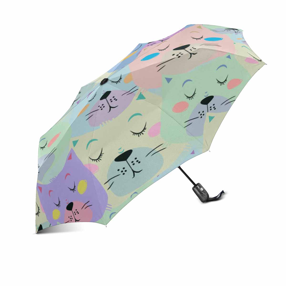 cute sleeping cat pattern travel umbrella automatic windproof foldable