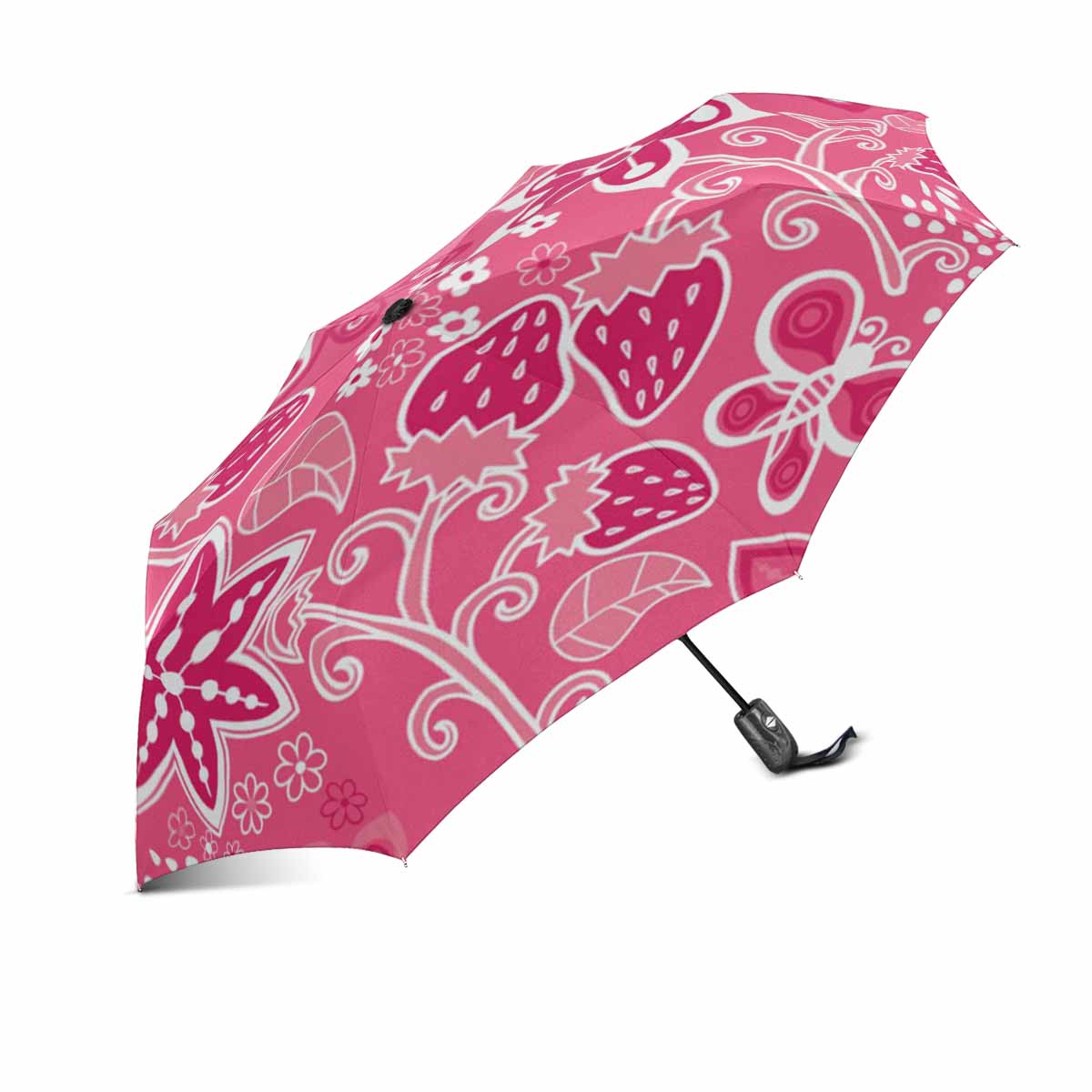 pink Floral with Strawberry pattern print Umbrella Automatic Foldable with totes