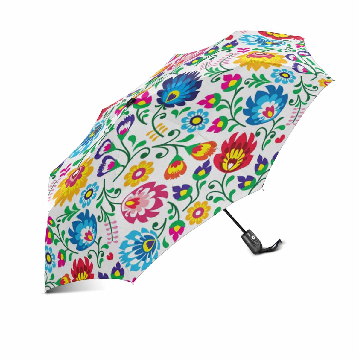 Polish folk colorful flowers pattern travel umbrella automatic windproof foldable