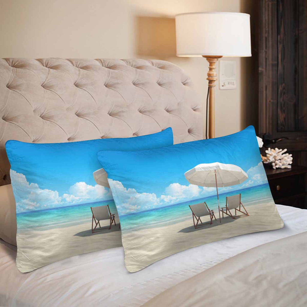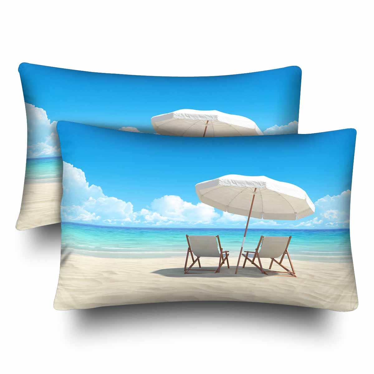 Tropical themed Rectangle Pillow Cases printed Beach chair and umbrella on sand beach