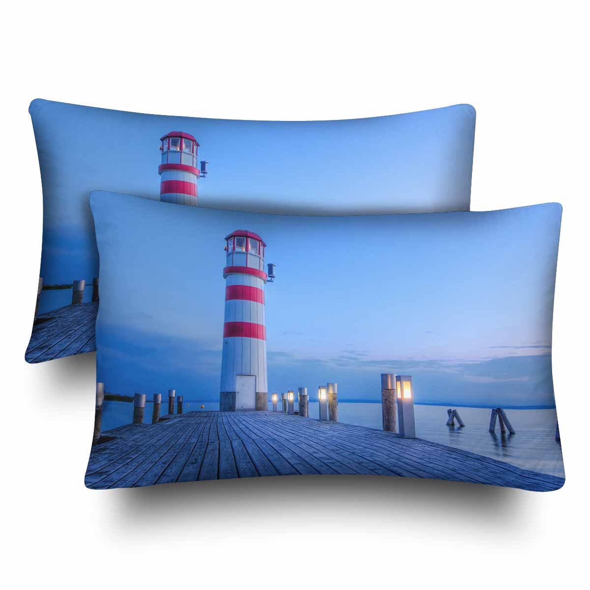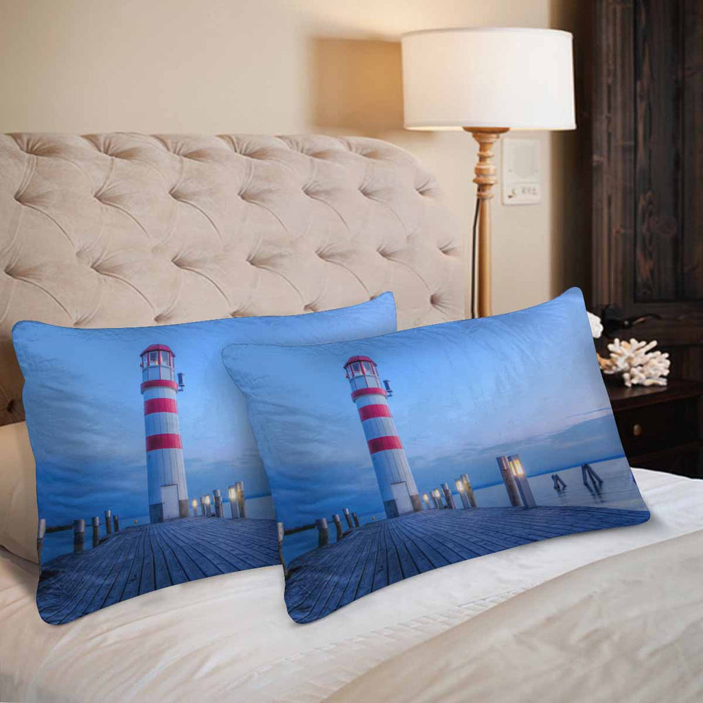 Tropical themed Rectangle Pillow Cases printed red striped lighthouse