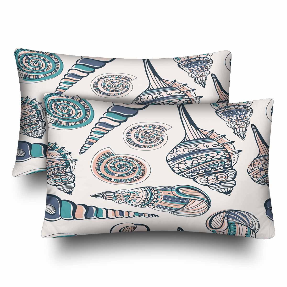 Tropical themed Rectangle Pillow Cases printed vintage pattern with white seashells