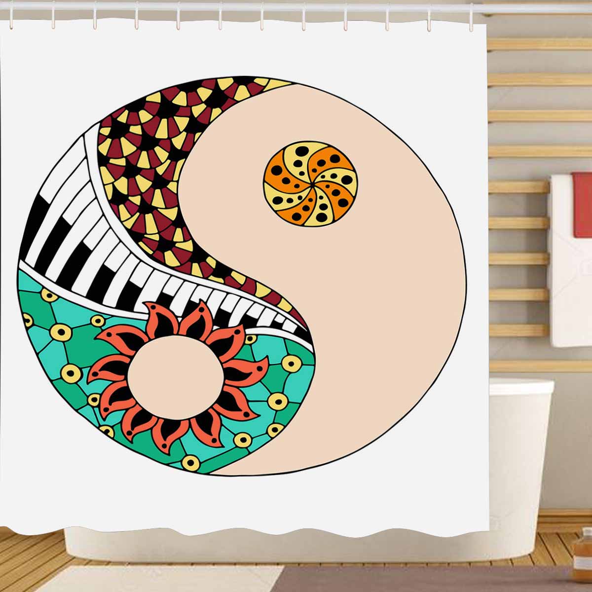 Vintage themed Shower Curtains print with Hippie vintage yin and yang symbol