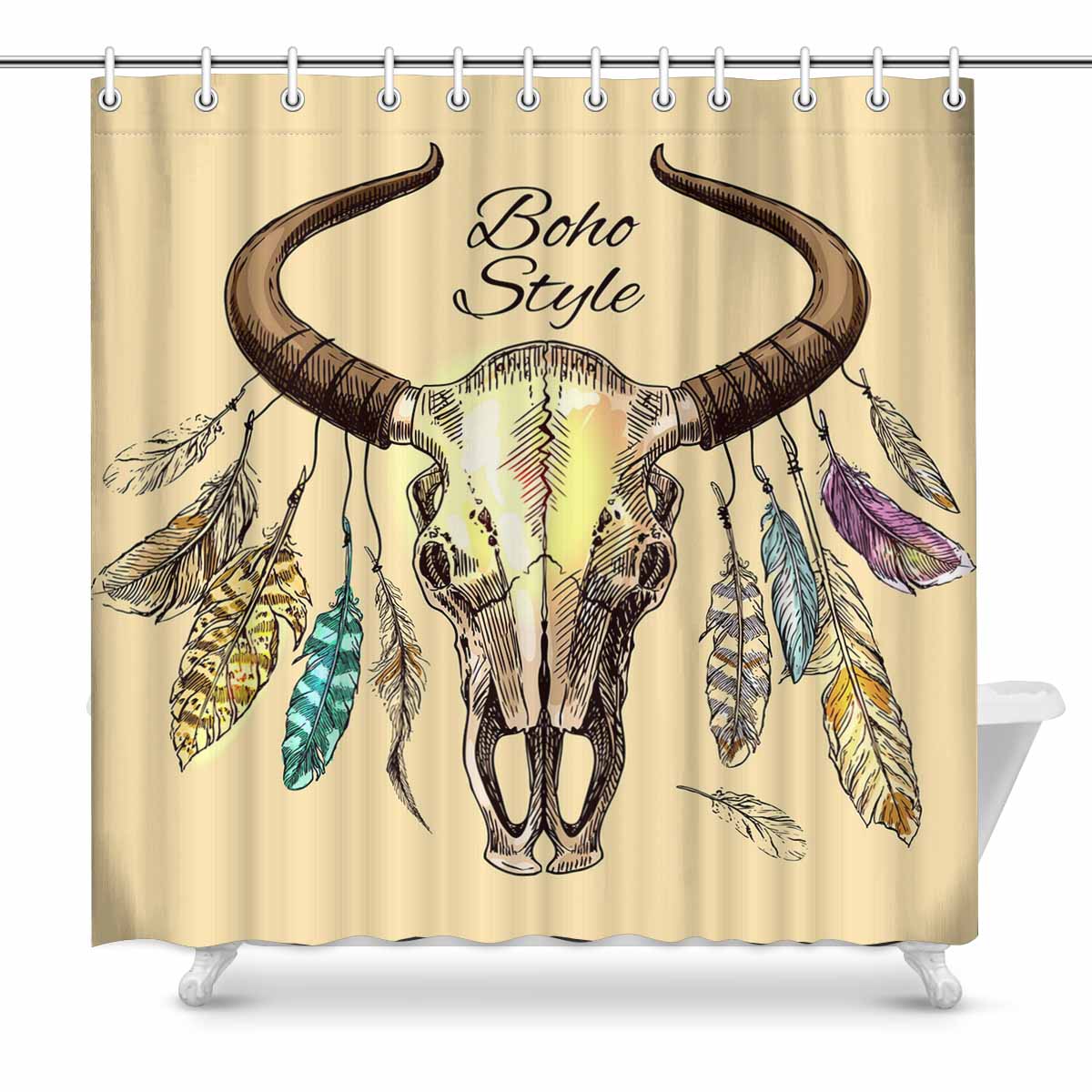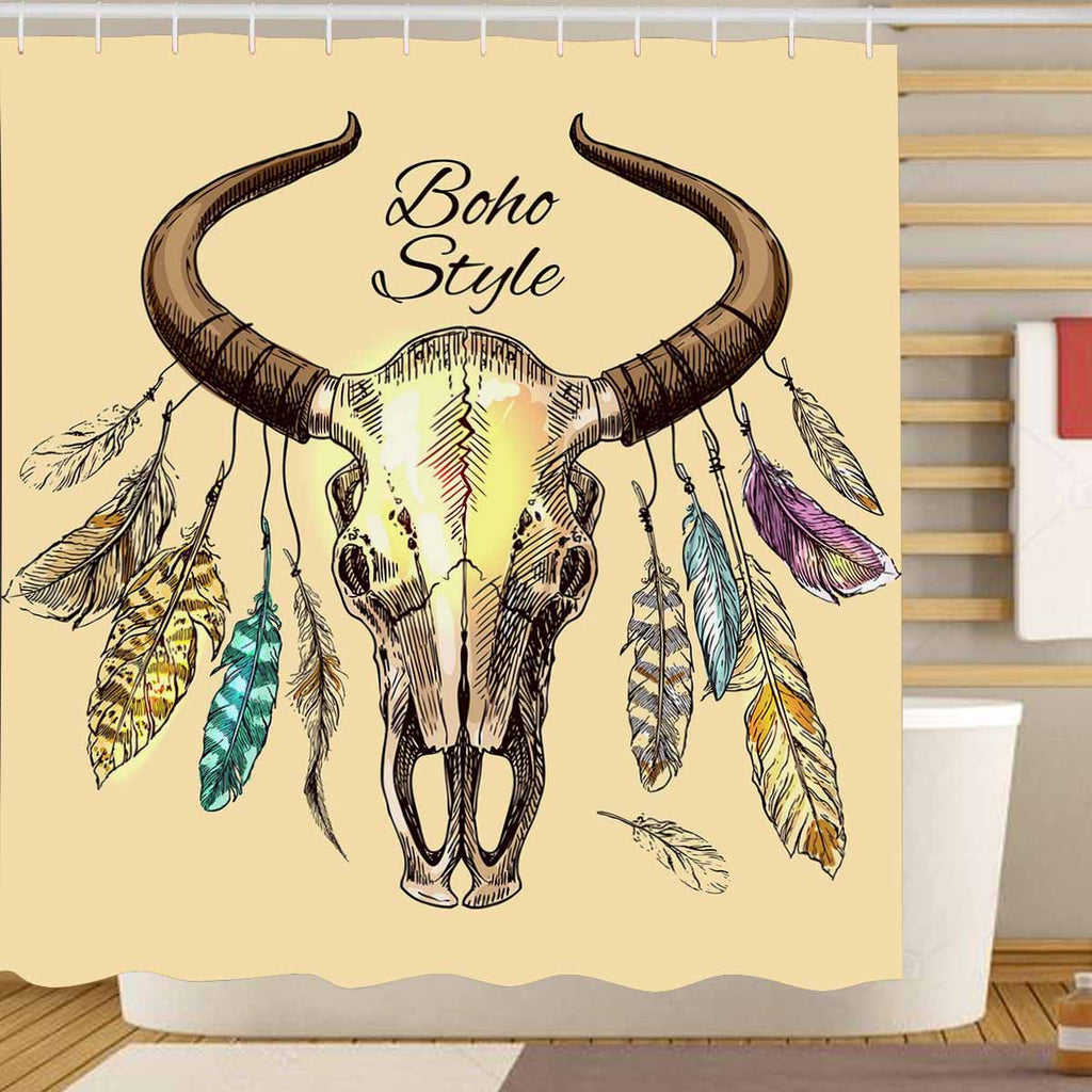 Vintage themed Shower Curtains print with sketch illustration the skull of a bull tribal design