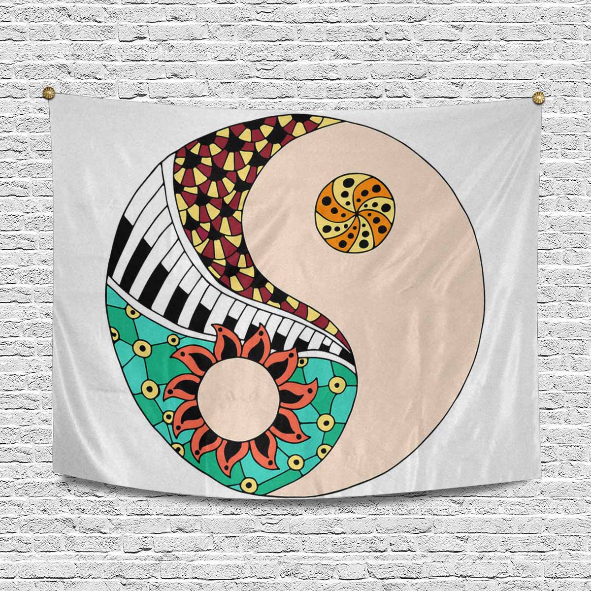 Vintage themed printed Wall Tapestries Hippie vintage yin and yang symbol