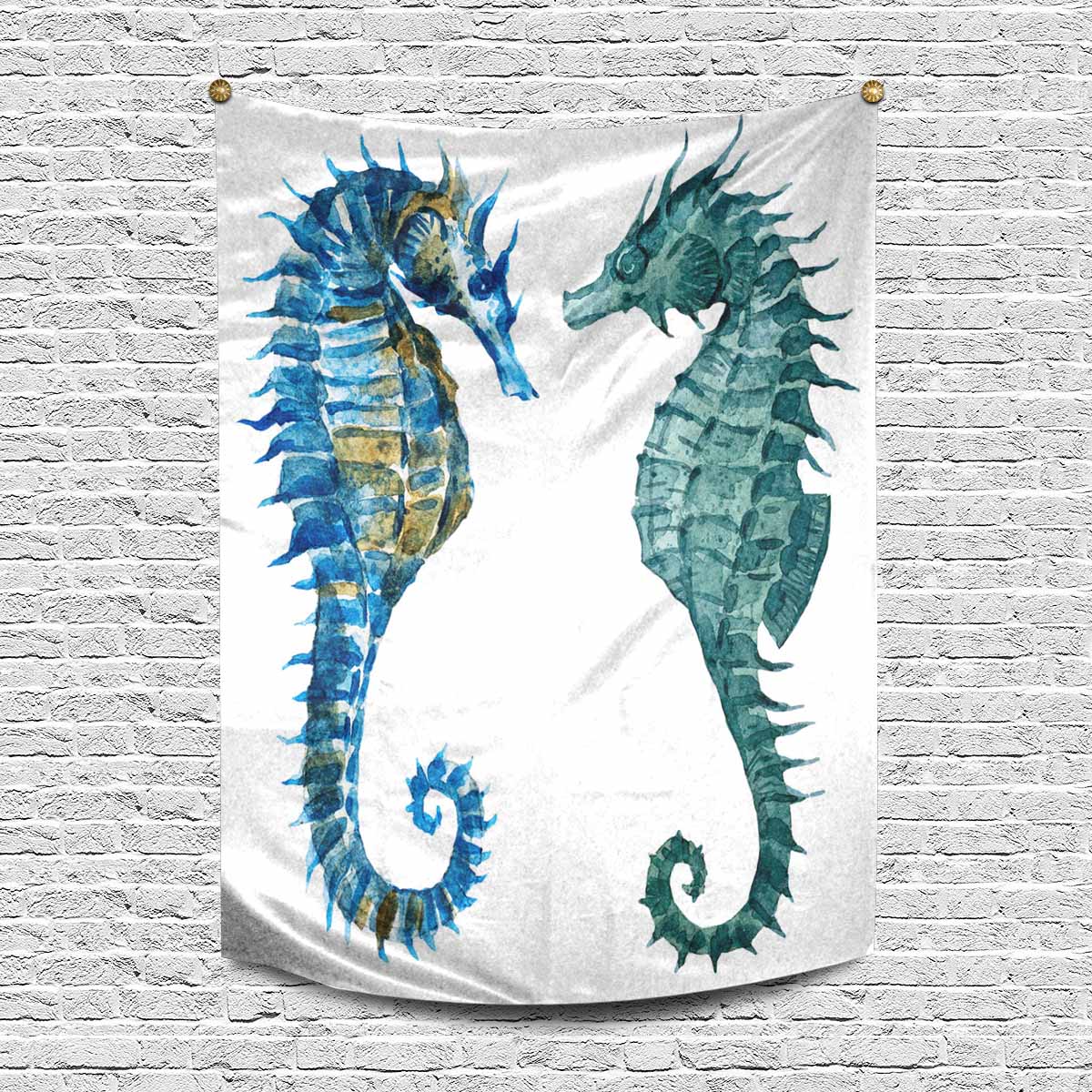 Animals themed long Wall Tapestry print with Beautiful raster image with nice watercolor seahorses